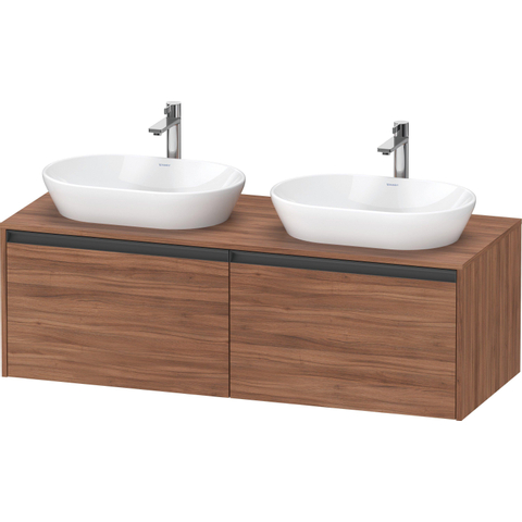 Duravit Ketho 2 wastafelonderbouwkast incl. consoleplaat met 2 laden voor dubbele waskommen 140x55x45.9cm met handgrepen antraciet noten mat