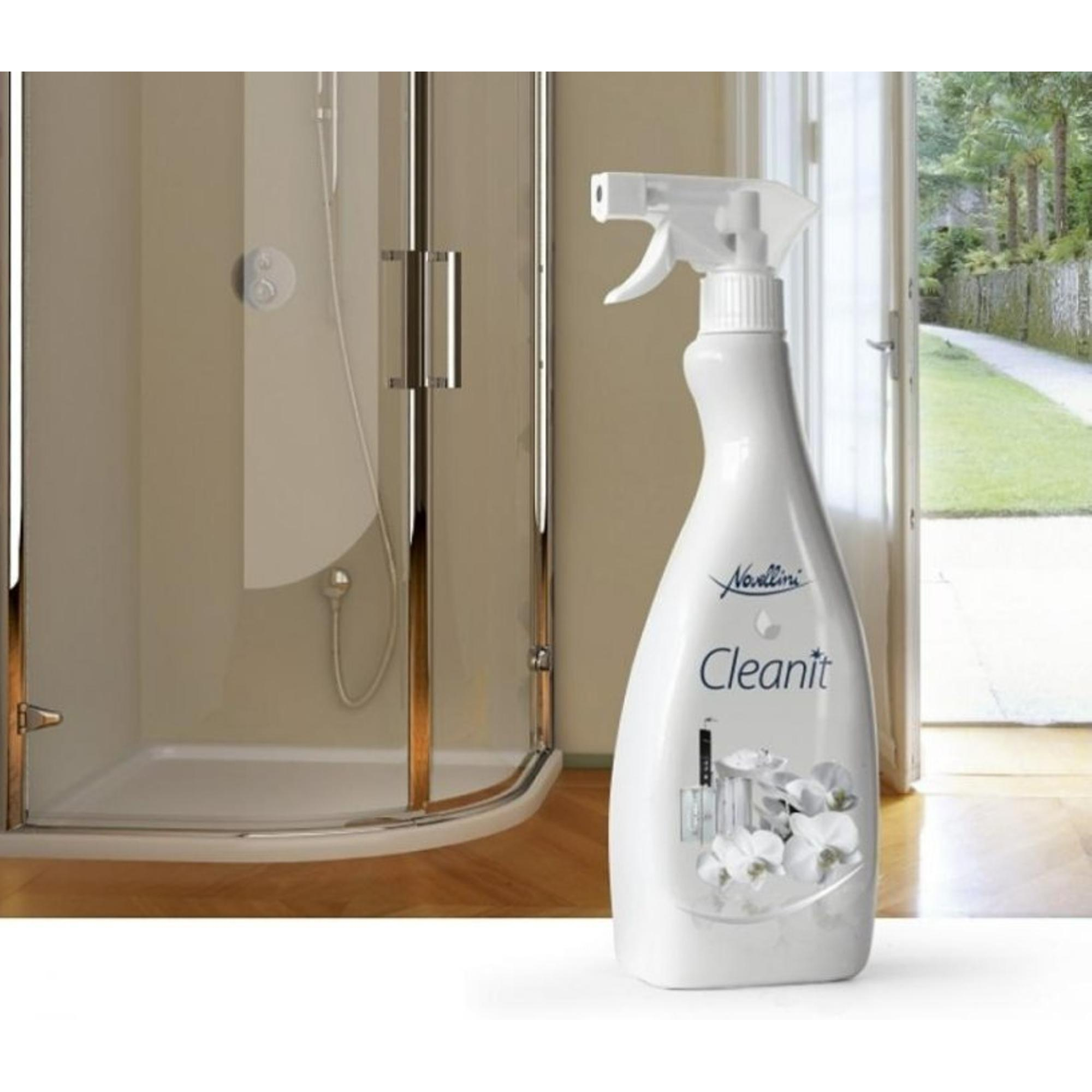 Om een douchewand, -cabine of bad bij het verstrijken van de tijd goed te onderhouden raadt Novellini Cleanit aan, met de unieke drie-in-een formule. Perfect voor aluminium profielen met gelakte, geoxideerde, gepolijste of verchroomde afwerking, maar ook voor glas. Cleanit is een ecologisch product en bevat geen fosfaten.