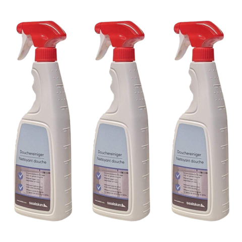 De Sealskin Onderhoud Douchereiniger 3 stuks staat bekend om zijn efficiëntie in het reinigen van douches. De krachtige formule dringt diep door en verwijdert hardnekkige kalkaanslag en zeepresten zonder moeite. Dankzij de handige sprayflacon is het aanbrengen van de reiniger eenvoudig en snel. Geniet van een glanzend schone douche in een handomdraai.
