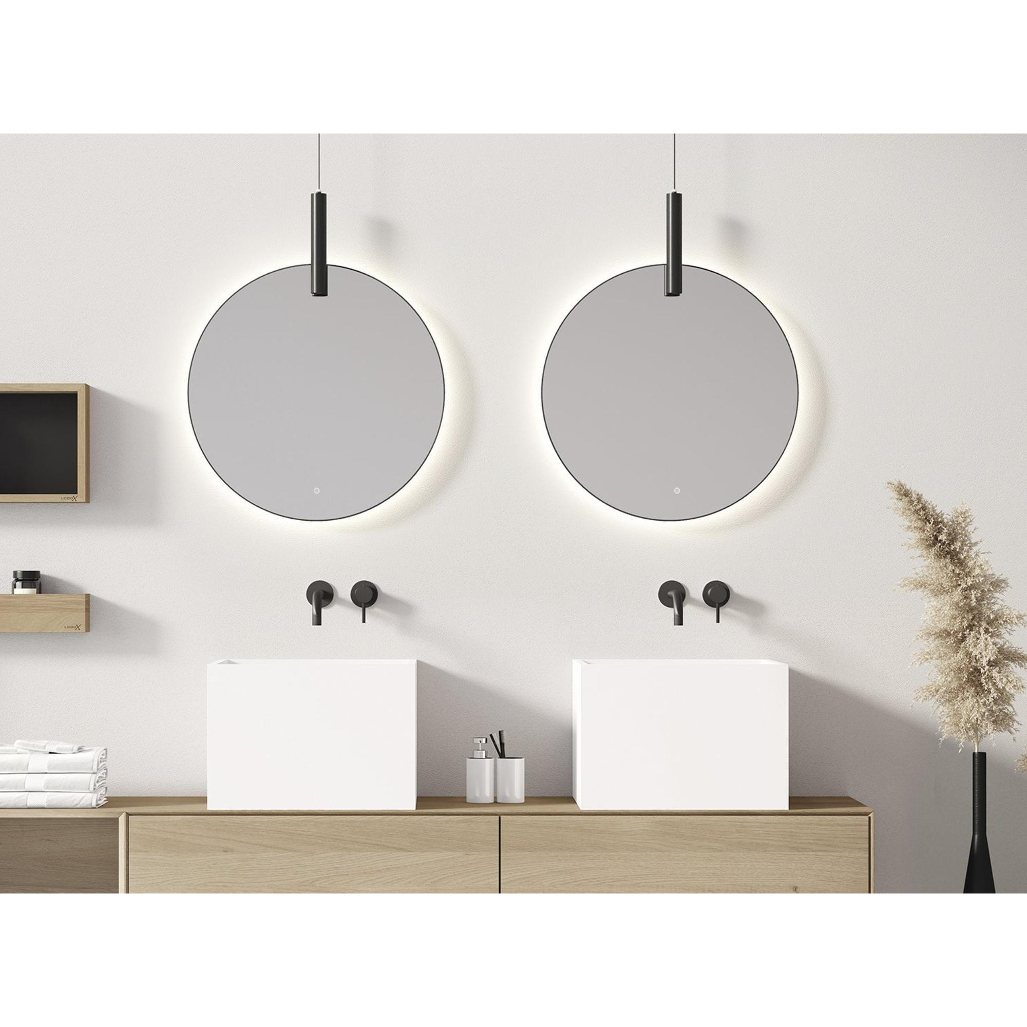 Looox Mirror collection spiegel - rond 100cm - ind.LED verl. sp.verw. m.black