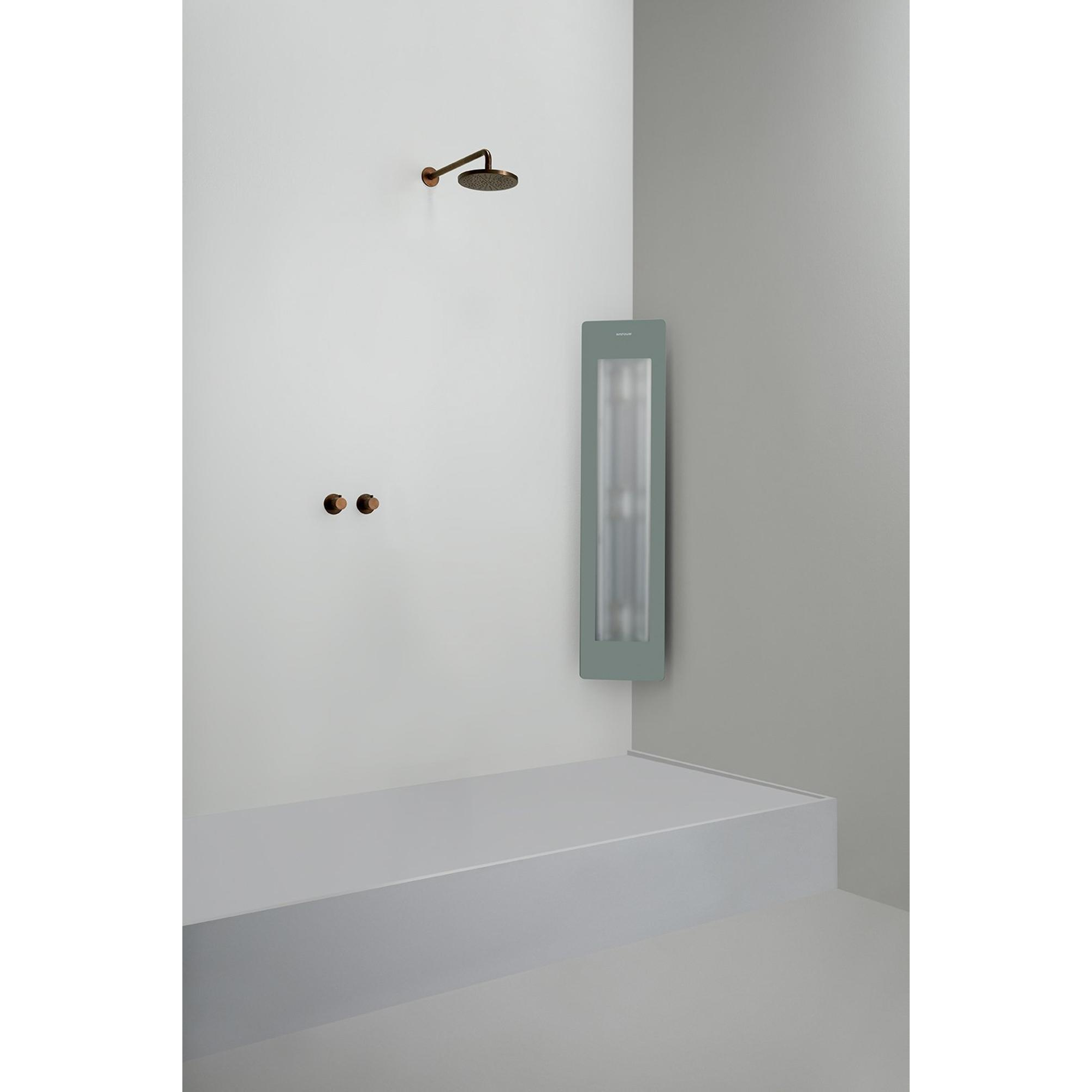 Opbouw douchepaneelDit douchepaneel van Sunshower is ontworpen om op de muur te bevestigen. Je kunt kiezen om hem in de hoek te plaatsen of om hem op de vlakke wand te plaatsen. Deze versie wordt geleverd met een installatieset voor in een hoek, maar je kunt dezelfde versie ook vinden met een installatieset voor op een vlakke wand. De afstand tot het hart van de douchekop moet 45 cm zijn.