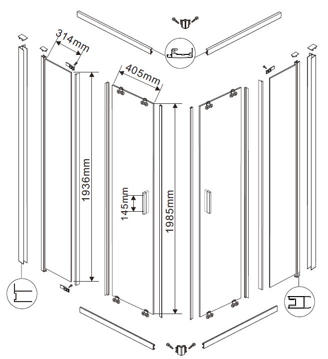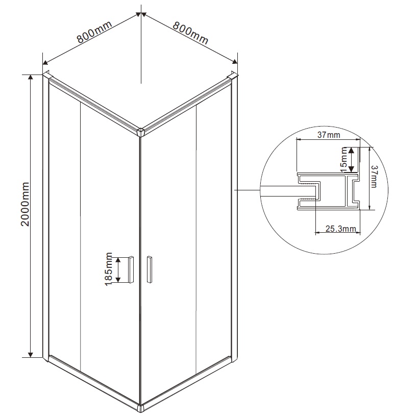 Saniclass Casus Douchecabine - 80x80x200cm - hoekinstap - helder glas - profiel - chroom