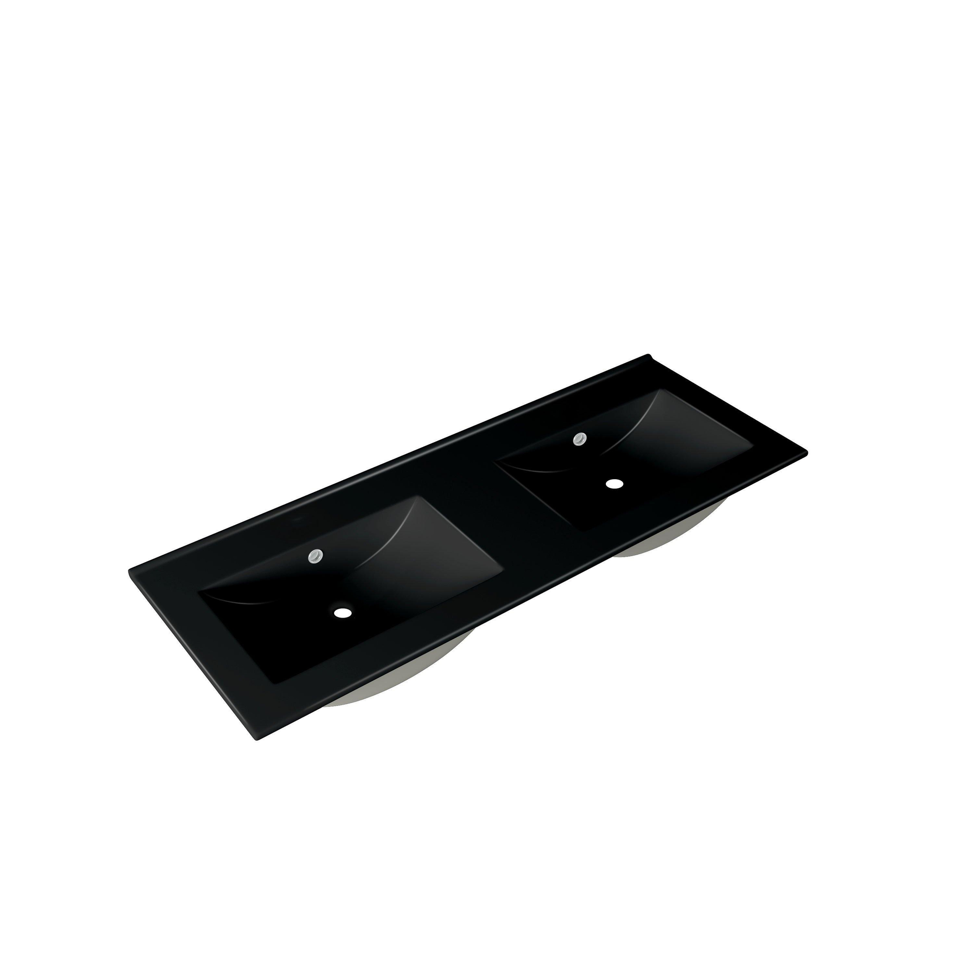 Adema Night meubelwastafel - 121x2x46cm - overloop - 2 wasbakken - 0 kraangaten - keramiek - mat zwart