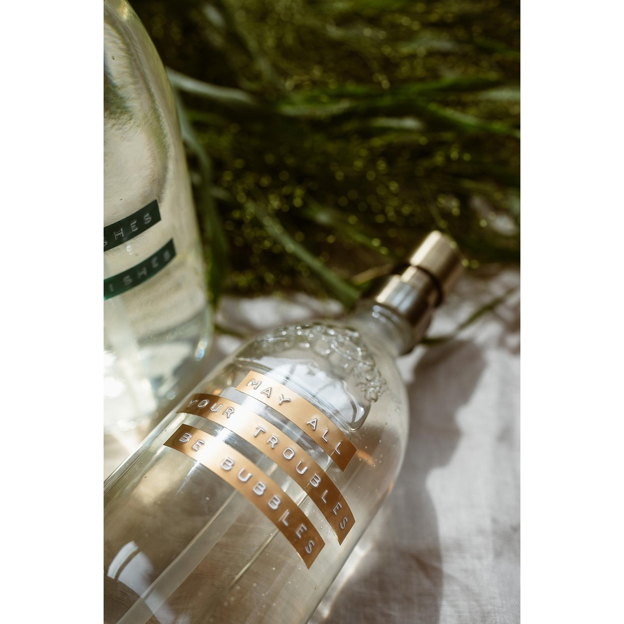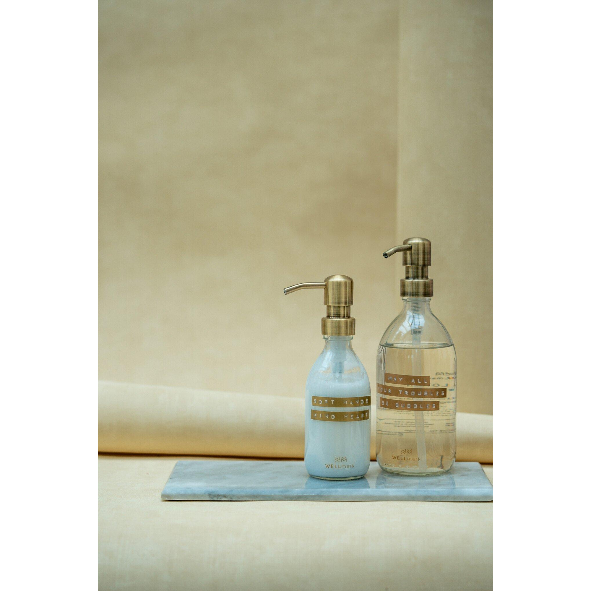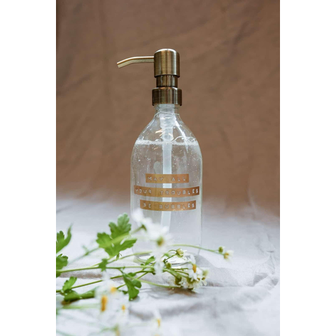 Wellmark Handzeep helder glas messing pomp 500ml tekst MAY ALL YOUR TROUBLES BE BUBBLES Brons label