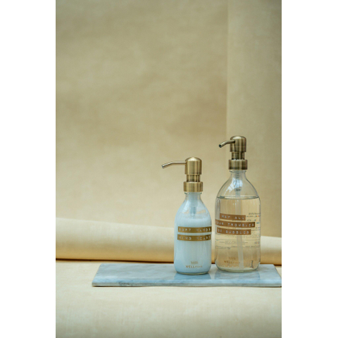 Het oog wil ook wat! Daarom heeft Wellmark een glazen flesje ontworpen, welke een echte ‘eyecatcher’ is in jouw badkamer. De fles heeft een vintage uitstraling! Wellmark wil hun producten iets extra’s geven om te koesteren, namelijk een persoonlijk detail. Daarom luidt de tekst op deze fles MAY ALL YOUR TROUBLES BE BUBBLES. De stijlvolle uitstraling in combinatie met de leuke teksten zorgt ervoor dat het leuk is om de zeeppomp cadeau te doen!