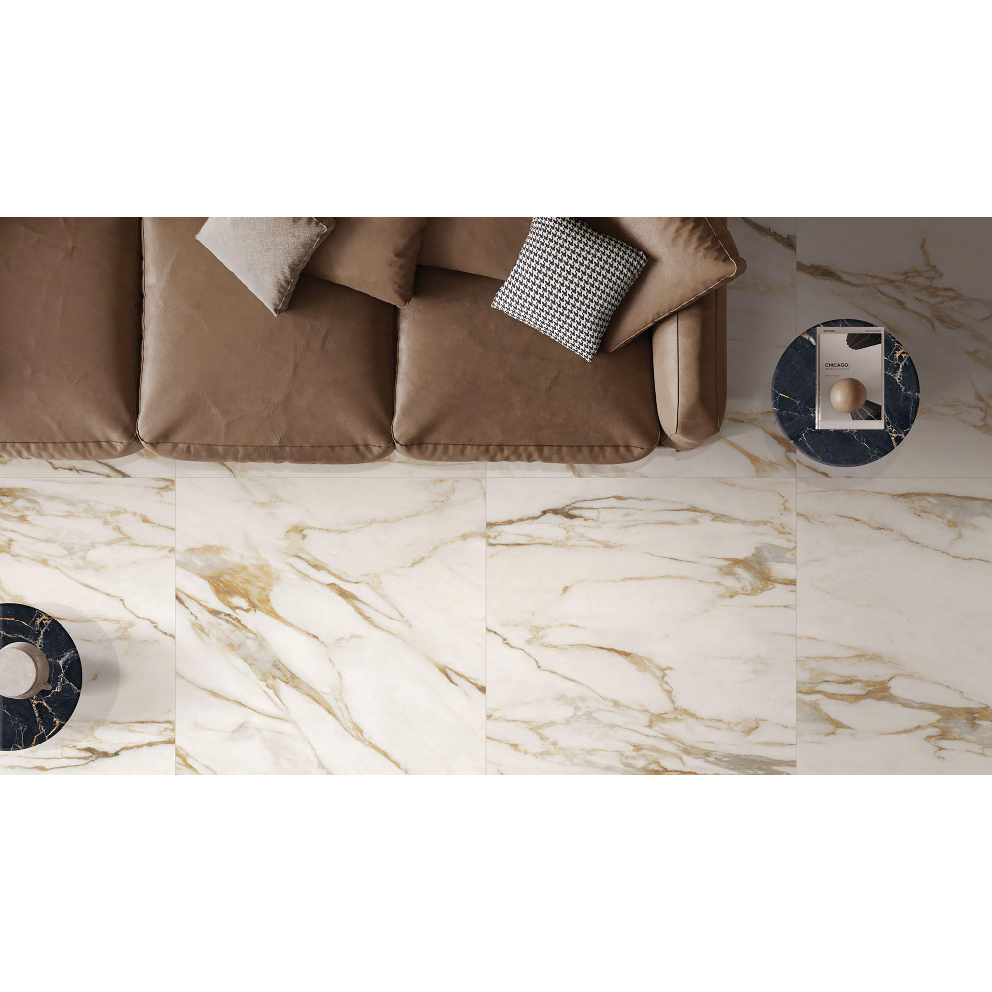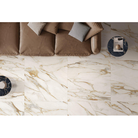 Deze tegel ademt luxe dankzij zijn hoogwaardige kwaliteit en prachtige afwerking. Het R10 porcellanato materiaal zorgt voor duurzaamheid en gemakkelijk onderhoud, waardoor de tegel perfect is voor dagelijks gebruik in een stijlvolle badkamer. De Calacatta Venna Oro marmerlook voegt een vleugje glamour toe en creëert een weelderige en luxueuze sfeer in elke ruimte.