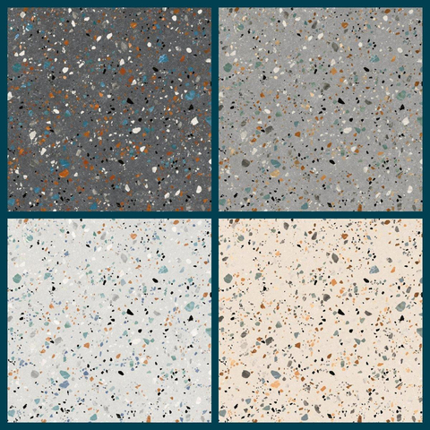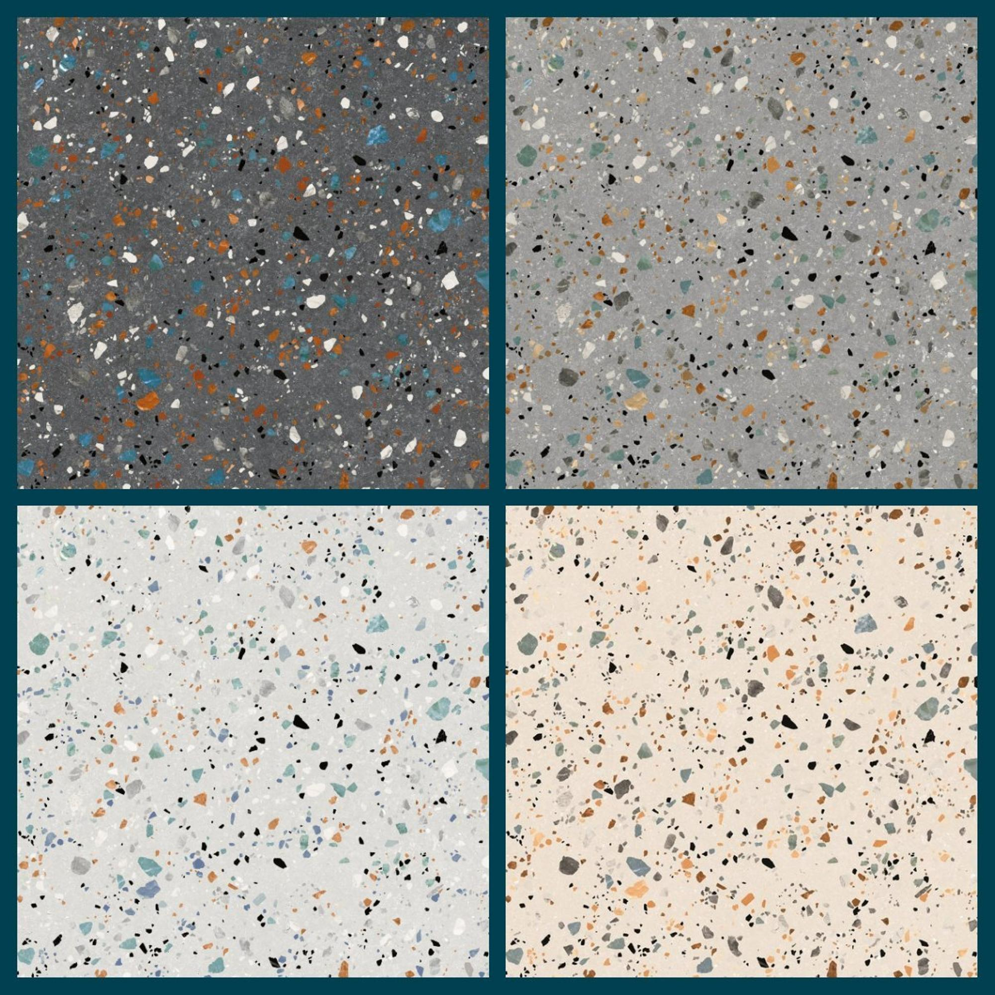 SAMPLE BOX 4 stuks Prissmacer Cerámica Gobi Vloer- en wandtegel gerectificeerd Terrazzo Mat Creme, Wit, Grijs en Antraciet