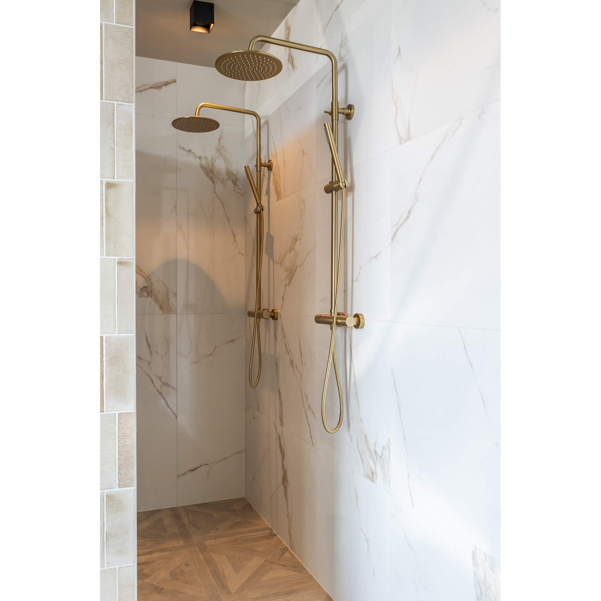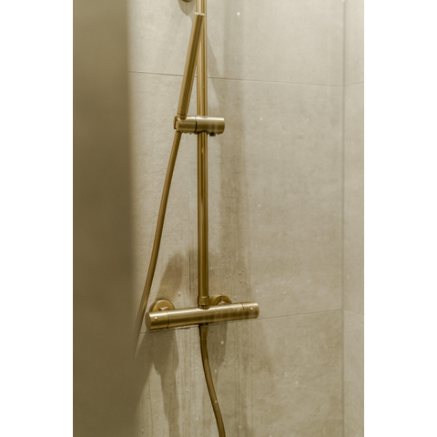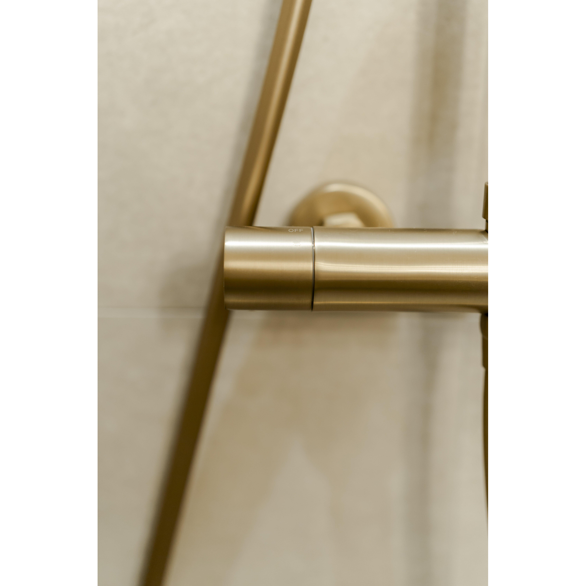 Fortifura Calvi Thermostatische Regendoucheset - 25cm - ronde hoofddouche - staafhanddouche - geborsteld messing PVD