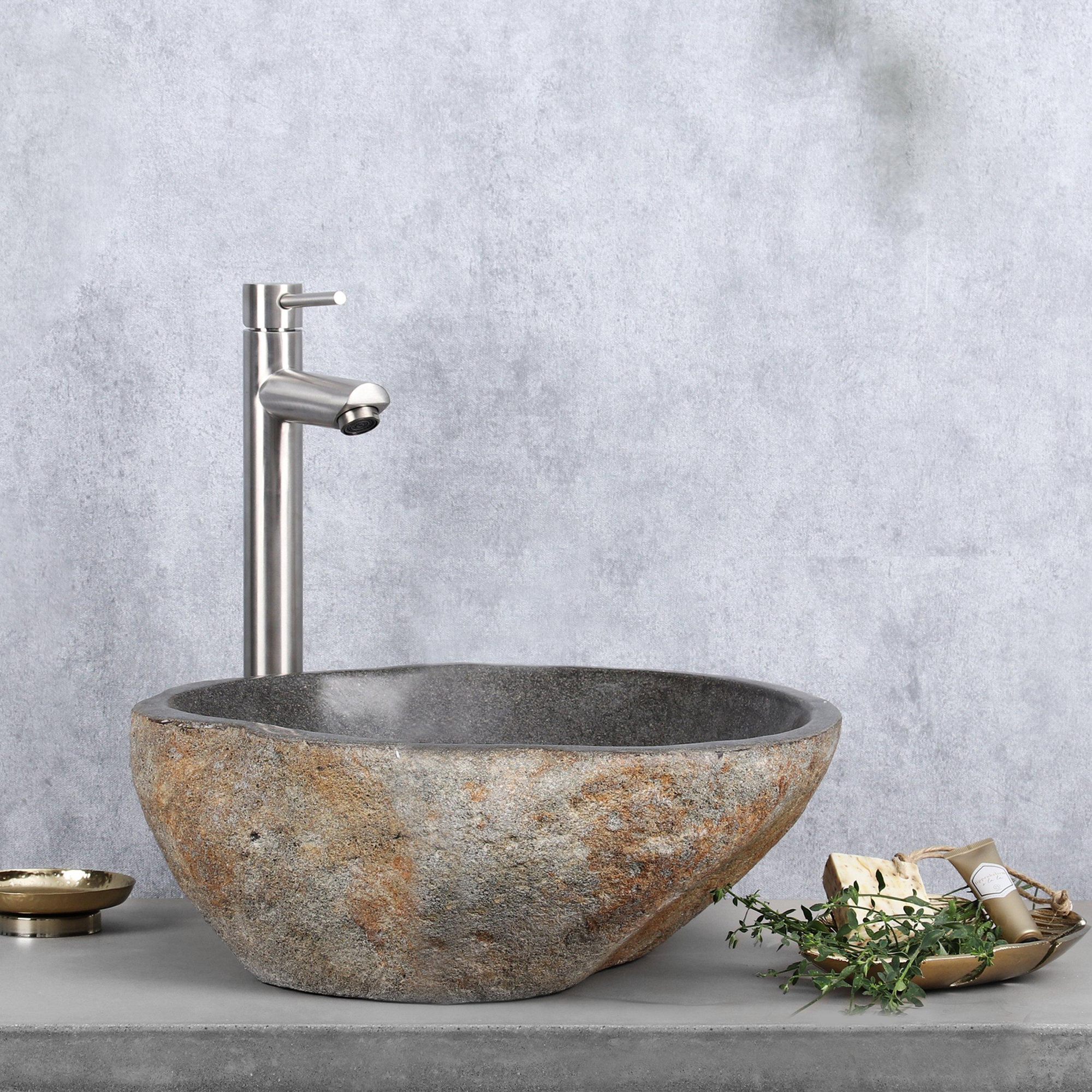 De Differnz Lombok waskom is een uniek badkameraccessoire dat direct de aandacht trekt. Deze waskom is gemaakt van uitgeholde riviersteen, wat zorgt voor een natuurlijk en speels effect dat perfect aansluit bij verschillende interieurstijlen. Dankzij de warme grijs-crèmekleurige tint en de afmetingen van ongeveer Ø 30-36 cm x 15 cm, is elke waskom uniek en een waar pronkstuk in jouw badkamer.
