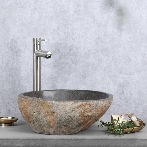 Om de natuurlijke uitstraling van de riviersteen te behouden, is het belangrijk de waskom meerdere malen per jaar te impregneren. Dit voorkomt vlekken van water en vuil en verlengt de levensduur. Maak de kom wekelijks schoon met een zachte doek en een zuurvrij schoonmaakmiddel, en droog deze daarna goed af. De buitenzijde kan eenvoudig gereinigd worden met een zachte borstel.