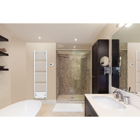 De Stelrad Dahlia E-Vento elektrische radiator straalt een moderne uitstraling uit die perfect past bij eigentijdse interieurs. Het glanzend witte ontwerp geeft een frisse en schone look aan de ruimte, terwijl de strakke lijnen en slanke afmetingen zorgen voor een minimalistische esthetiek. Deze radiator is een harmonieuze mix van functionaliteit en design, waardoor het een statementstuk is dat zowel praktisch als visueel aantrekkelijk is.