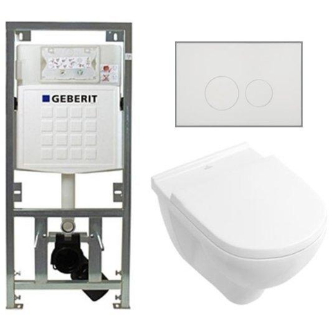 Villeroy & Boch O.novo Toiletset - Geberit inbouwreservoir - diepspoel wandcloset - softclose - bedieningsplaat rechthoekige knoppen - wit