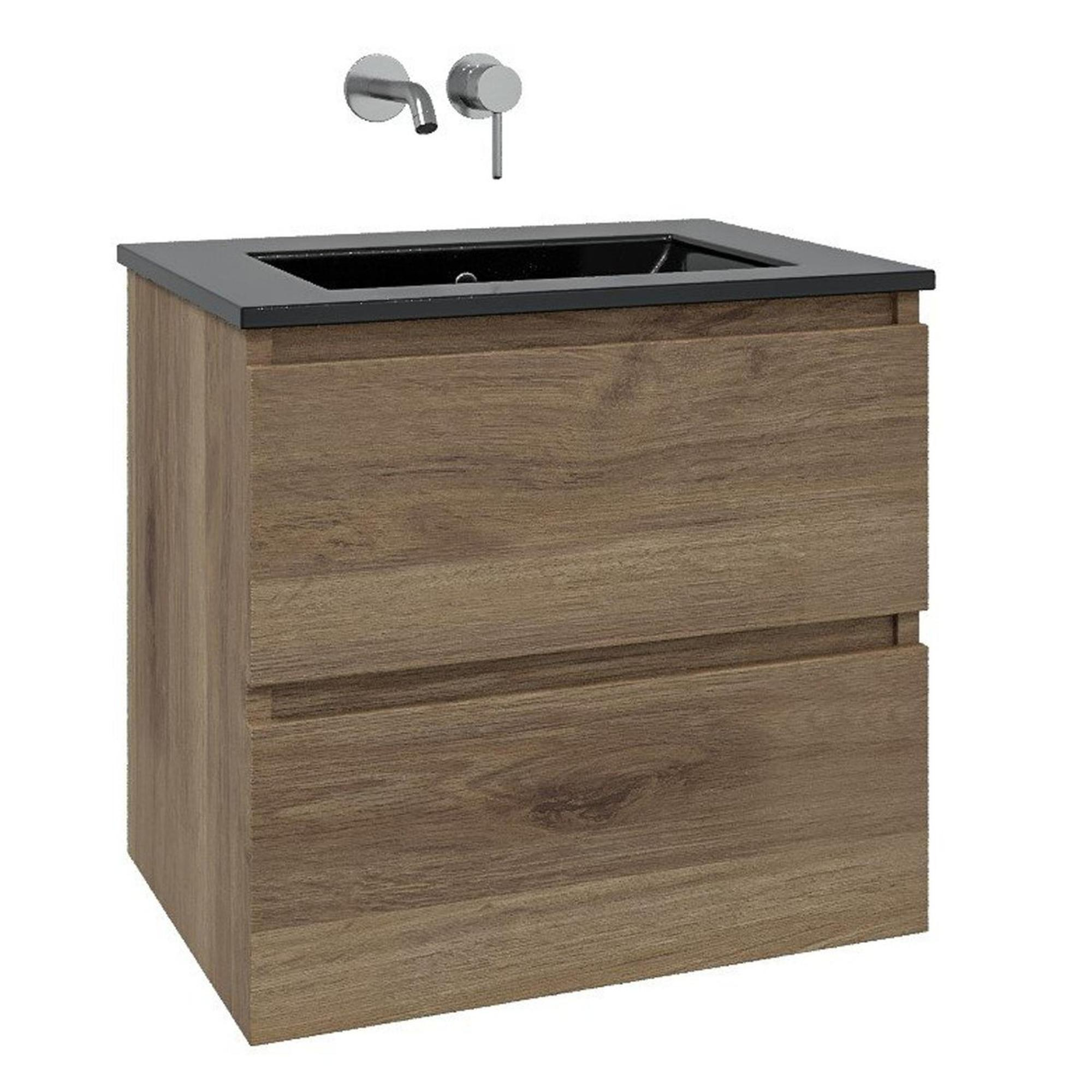 Adema Chaci Badkamermeubelset - 60x46x57cm - 1 keramische wasbak zwart - zonder kraangaten - 2 lades - eiken