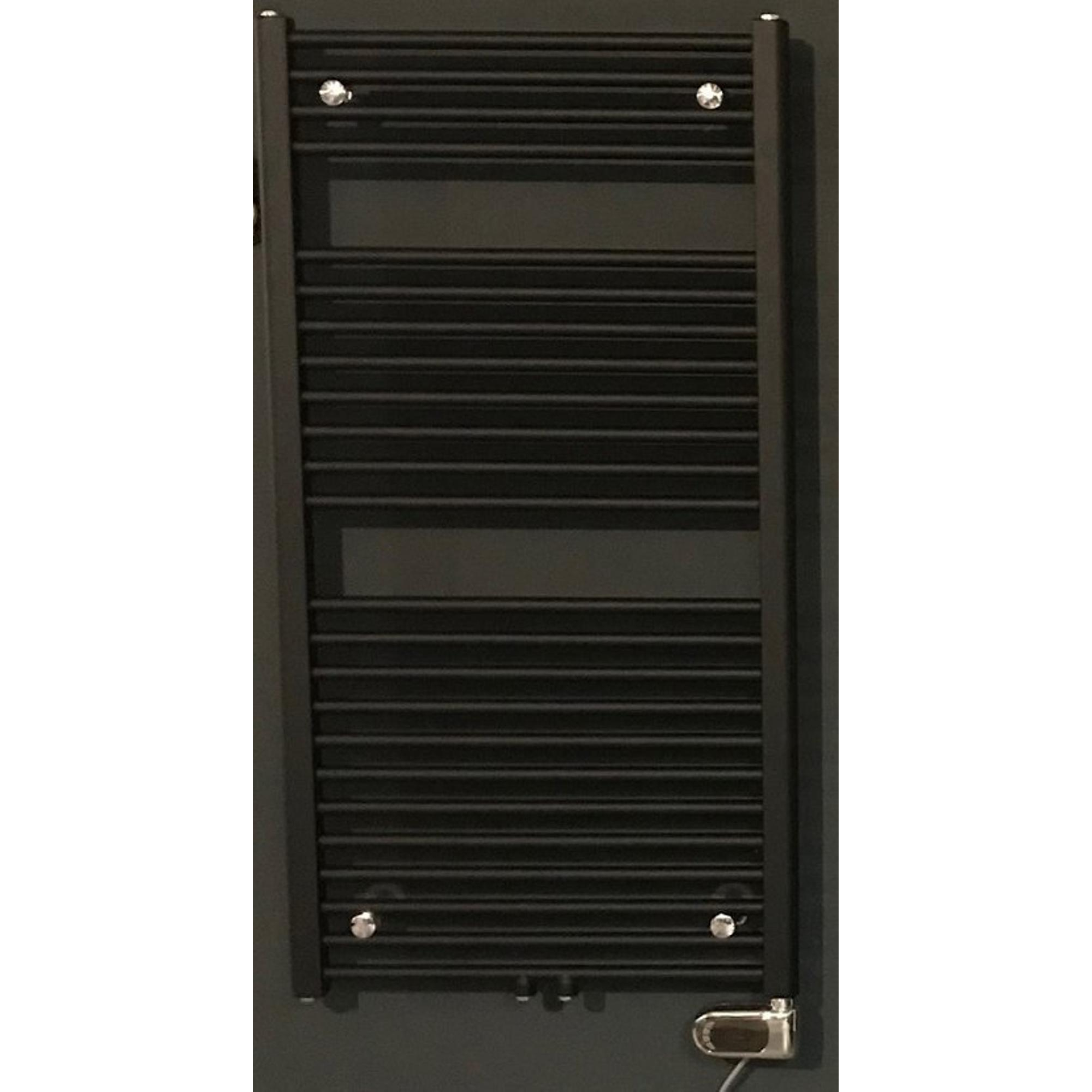 Instamat Robina Elektrische Handdoekradiator 149x60cm met 4 aansluitingen ½ incl. wandconsoles soft zwart SW793470