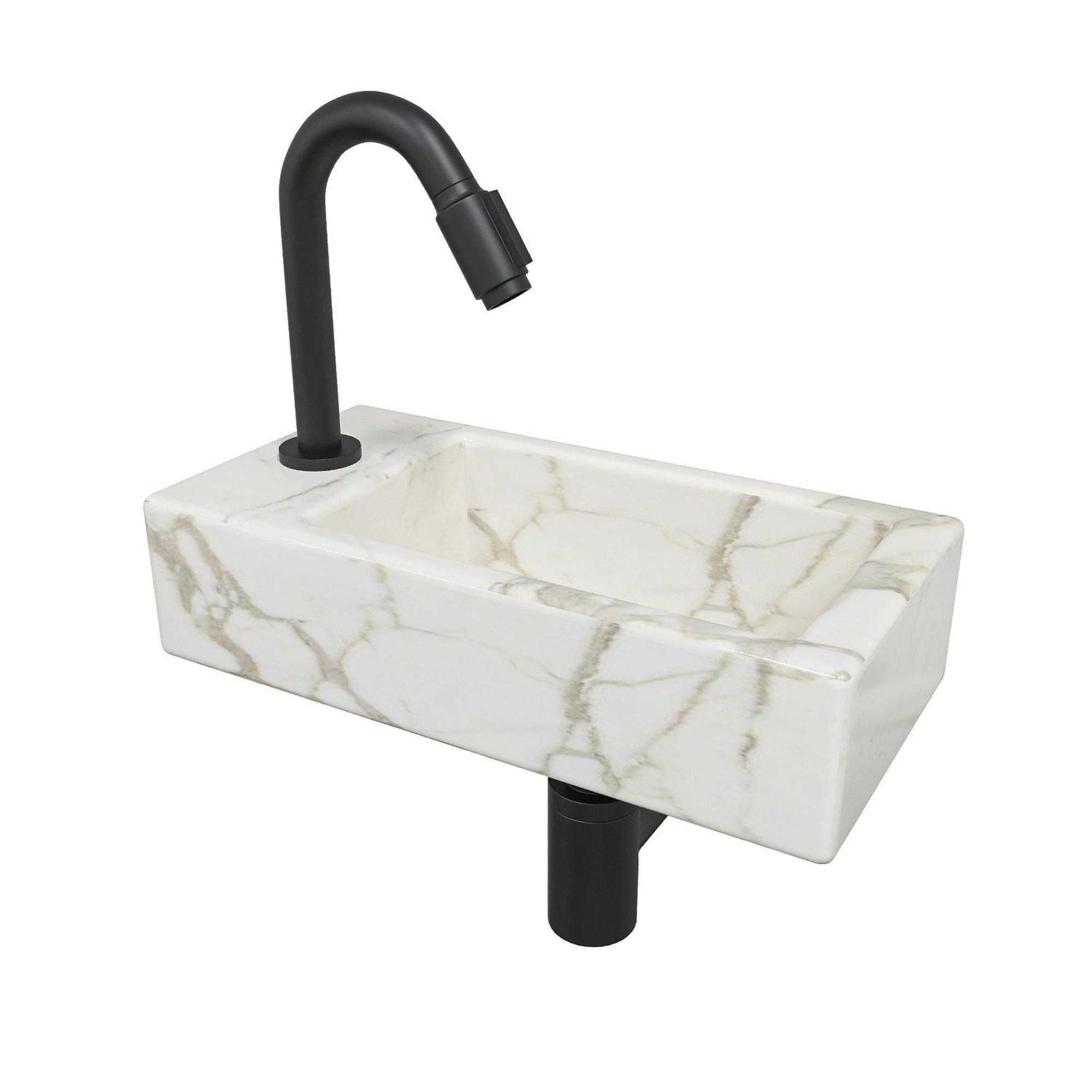 Wiesbaden Mini-Rhea Links fonteinset 36x18x9cm Carrara marmerlook wit incl. victoria luxe fonteinkraan zwart mat