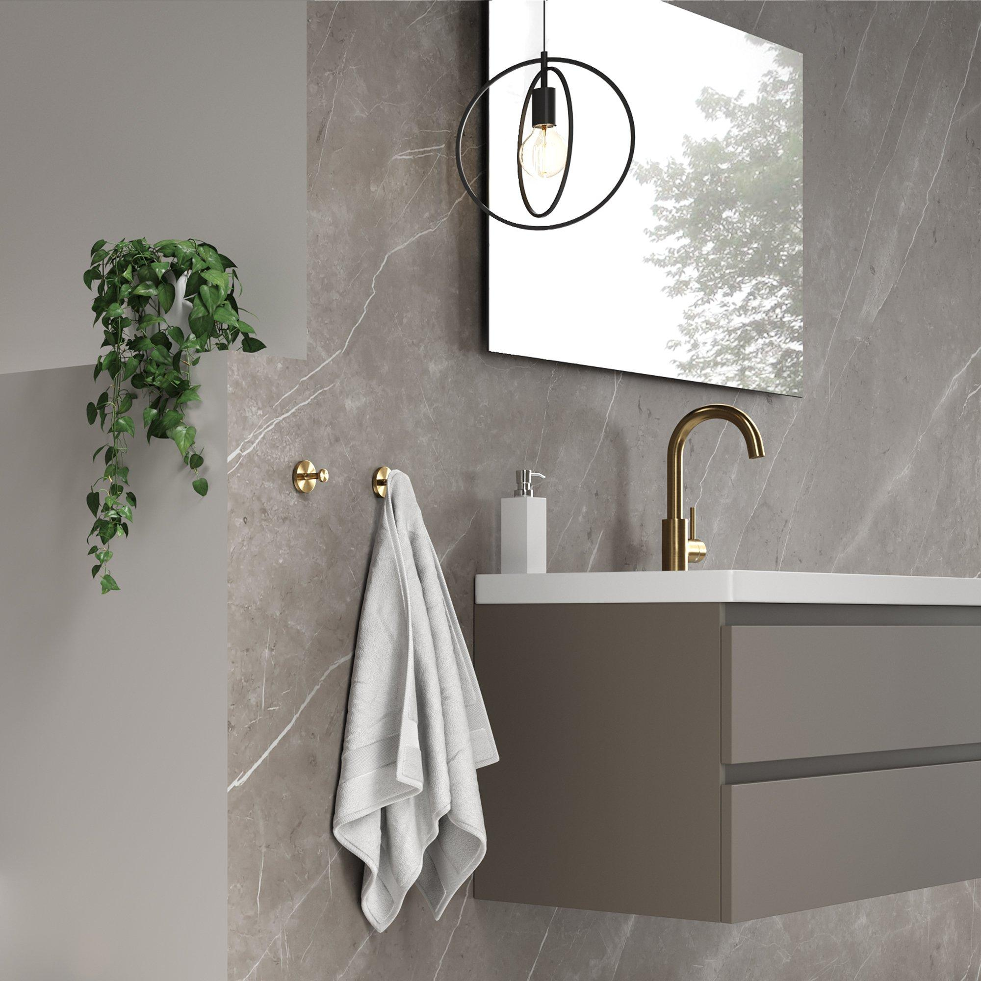 Deze handdoekhaak is vervaardigd uit hoogwaardige materialen die garant staan voor duurzaamheid en langdurig gebruik. Het geborsteld gouden oppervlak is niet alleen mooi om te zien, maar ook bestand tegen corrosie en slijtage. Hierdoor blijft de handdoekhaak er jarenlang als nieuw uitzien, zelfs bij dagelijks gebruik.