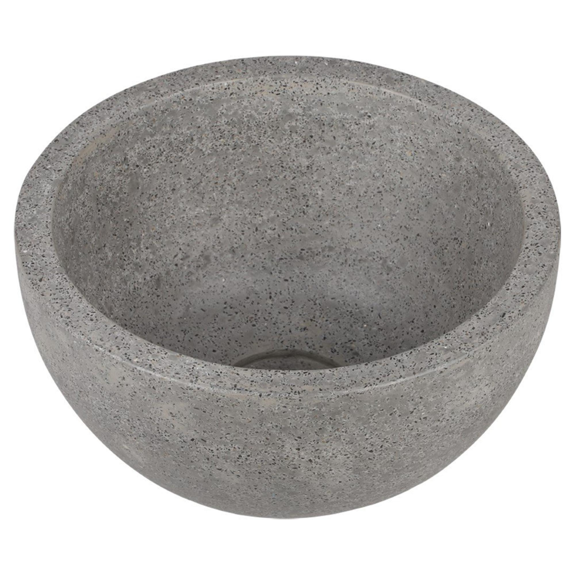 De Differnz River waskom in terrazzo grijs combineert een stijlvolle mediterrane uitstraling met robuuste duurzaamheid. Met een diameter van 23 cm en een hoogte van 12 cm is deze compacte waskom ideaal voor kleinere badkamers of toiletruimtes.Unieke uitstraling met terrazzo Dankzij de fijne grijze terrazzo afwerking krijgt deze waskom een tijdloze en natuurlijke look. Terrazzo is een composietmateriaal van marmer- en granietkorrels, aangevuld met cement en pigment, wat zorgt voor een luxe en speelse textuur.