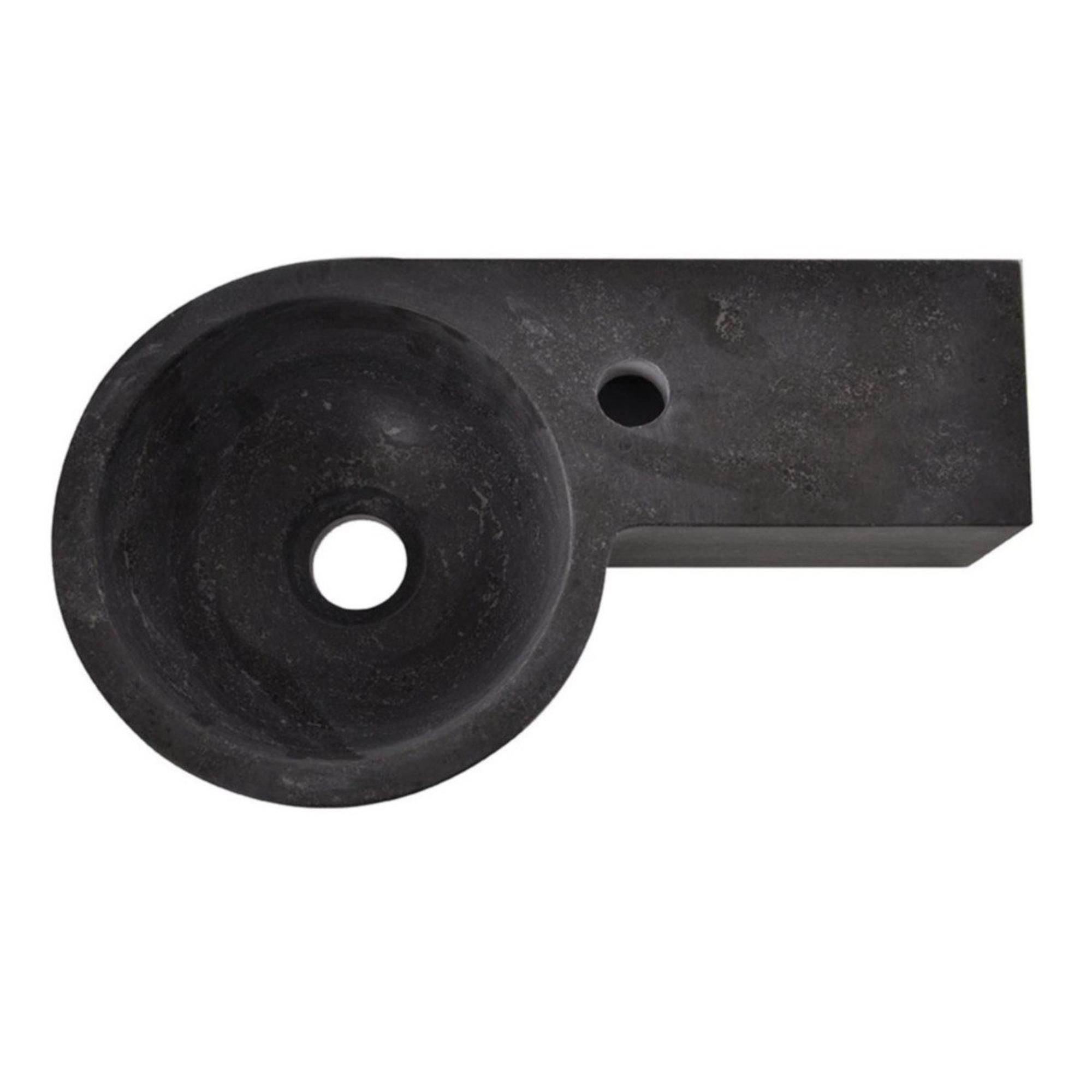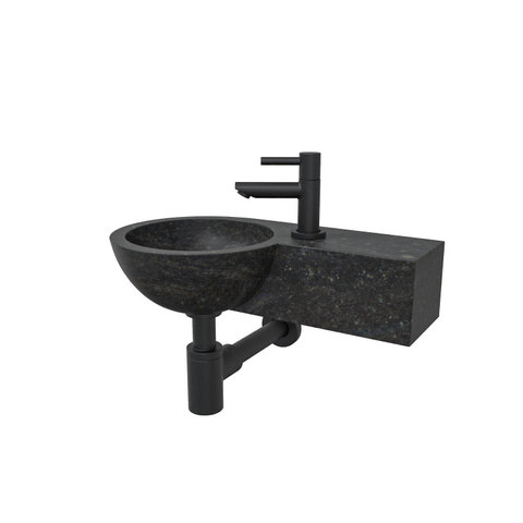 Wiesbaden B waskom rond 40x23x10cm met kraangat rechts hardsteen zwart incl Amador fonteinkraan zwart mat