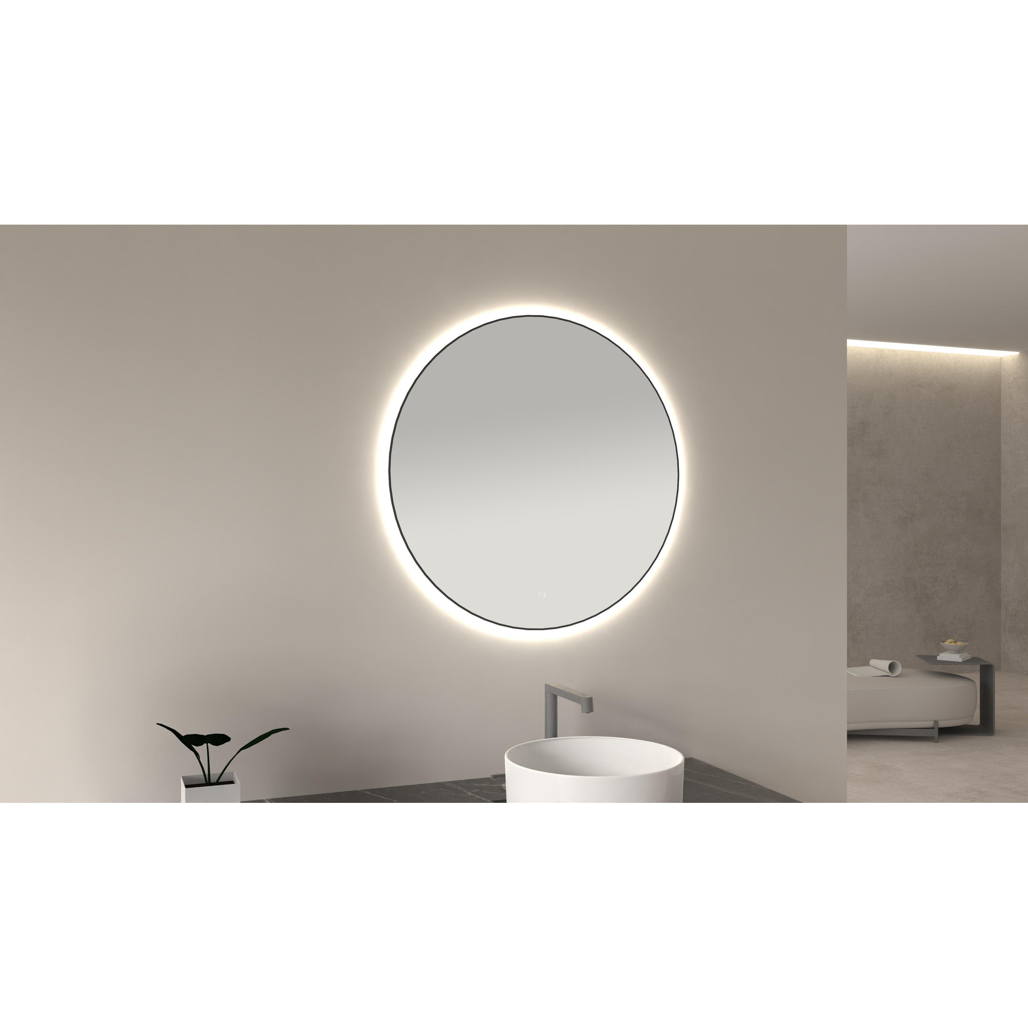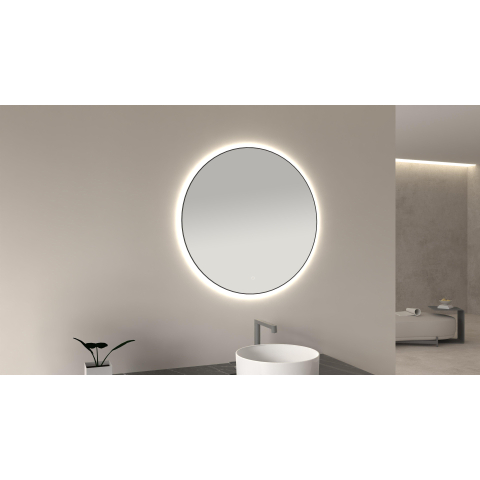 Wiesbaden Novi ronde spiegel met LED, dimbaar 80 cm mat zwart