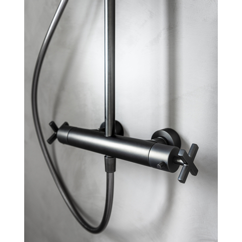 Royal Plaza Rosa showerset met thermostaat kruisgreep black steel SHOWROOMMODEL