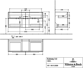 Villeroy & Boch Subway 3.0 Wastafelonderkast - met verlichting - 4 uittrekladen - 1272 x 576 x 478 mm - Taupe