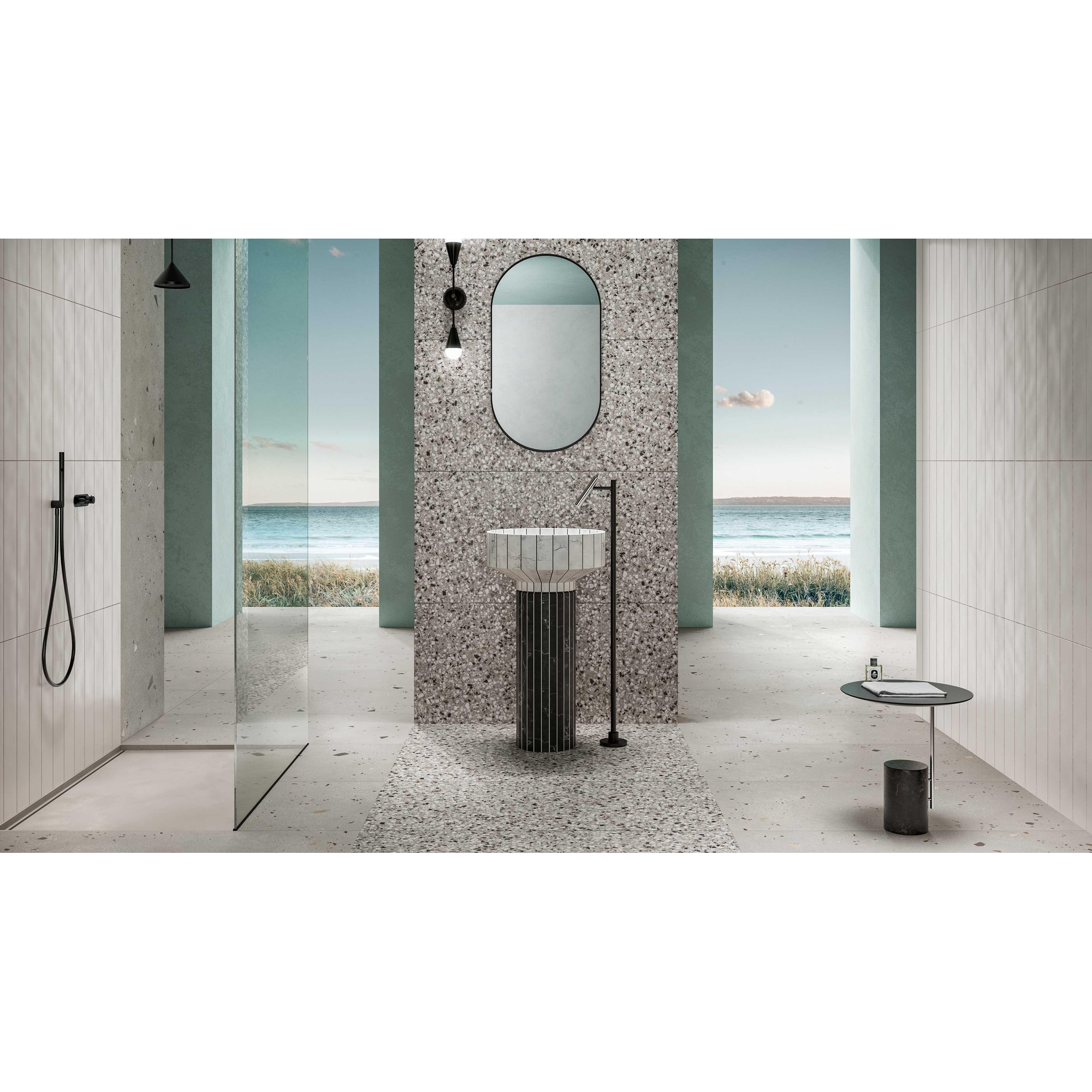 De vtwonen Terrazzo Vloer- en wandtegel straalt een tijdloze elegantie uit die elke badkamer transformeert tot een oase van stijl. Met zijn prachtige afmetingen van 60x120cm voegt deze tegel een gevoel van ruimte en luxe toe aan elke ruimte. De gerectificeerde afwerking zorgt voor een naadloze look die perfectie uitstraalt.