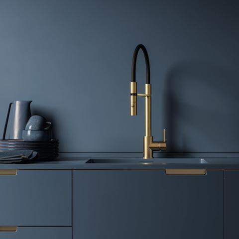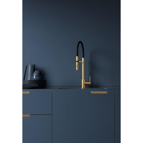 De Hotbath Fellow Keukenmengkraan is een prachtig ontworpen kraan die zowel functioneel als stijlvol is. Met zijn draaibare uitloop en flexibele uitneembare handdouche biedt deze kraan ultiem gemak en comfort in de keuken. Het geborsteld messing PVD-afwerking voegt een vleugje elegantie toe aan elke keukenruimte. Of je nu aan het koken bent of je handen wast, deze kraan is een perfecte aanvulling op elke moderne keuken.