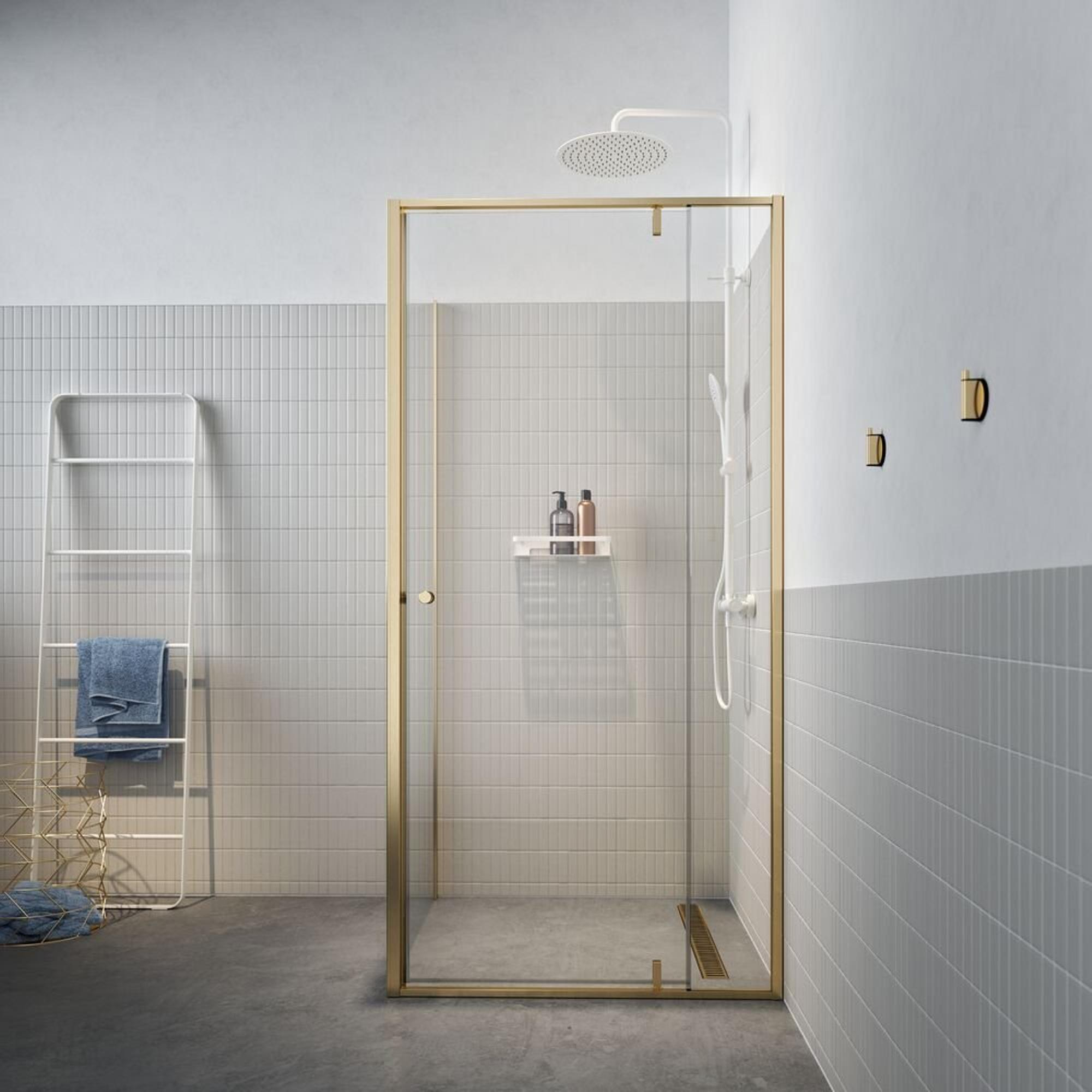 Sealskin Contour Draaideur met zijwand 100x100x200cm 6mm helder veiligheidsglas met antikalklaag Goud geborsteld SW799417