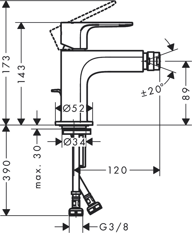 Dankzij een kogelgewricht is de wateruitloop 20 graden draaibaar in alle richtingen. Zo kun je de bidetmengkraan flexibel gebruiken. Bijzonder veilig: de temperatuurbegrenzing kan tijdens montage worden ingesteld om te beschermen tegen te heet water. Inclusief de pop-up afvoergarnituur dat gemakkelijk met één hand geopend en gesloten kan worden. Dit maakt het makkelijk om de afvoerstop te bedienen. Je hoeft niet in het water te reiken.