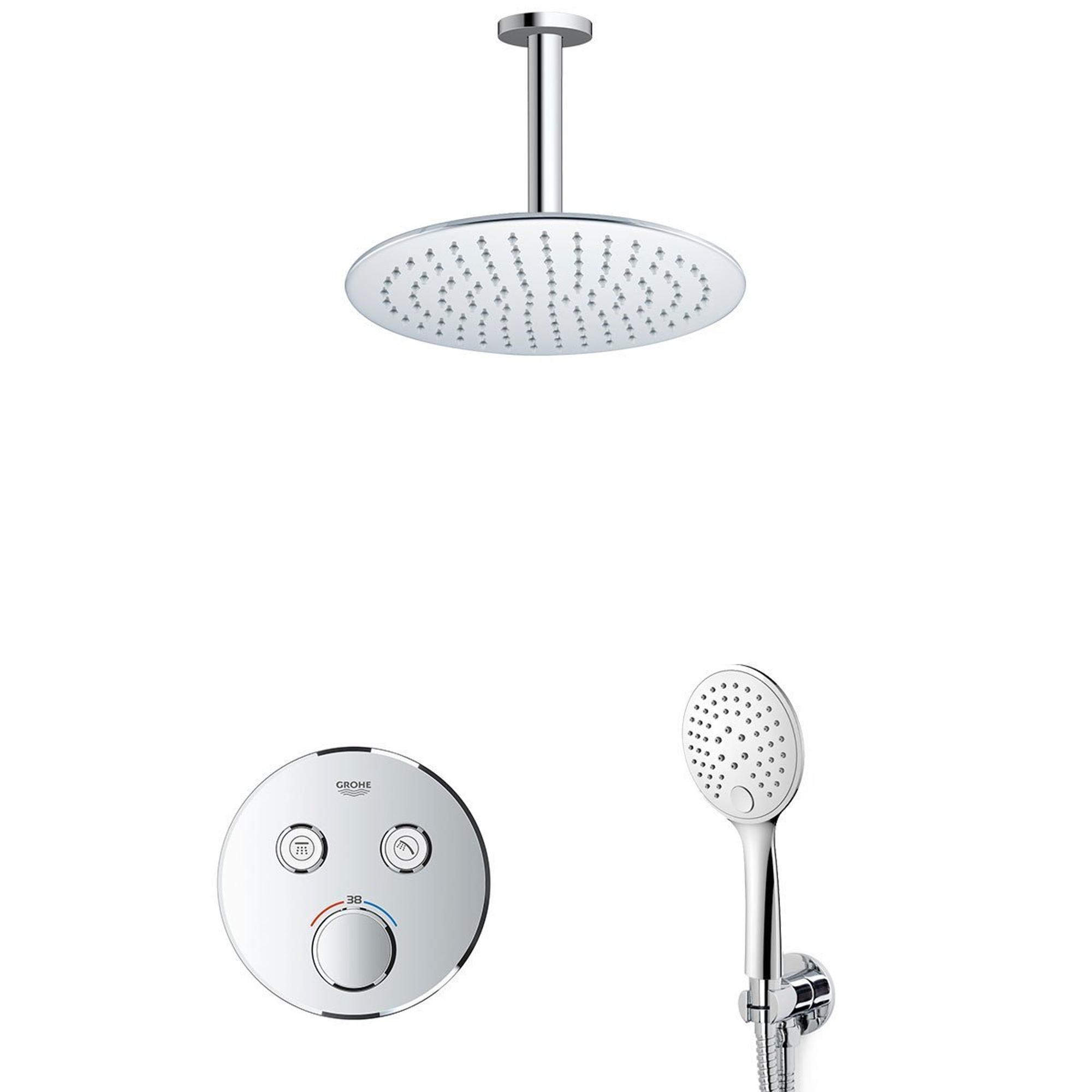 GROHE Grohtherm Regendoucheset Inbouw - hoofddouche 25cm - handdouche rond - plafondarm - chroom