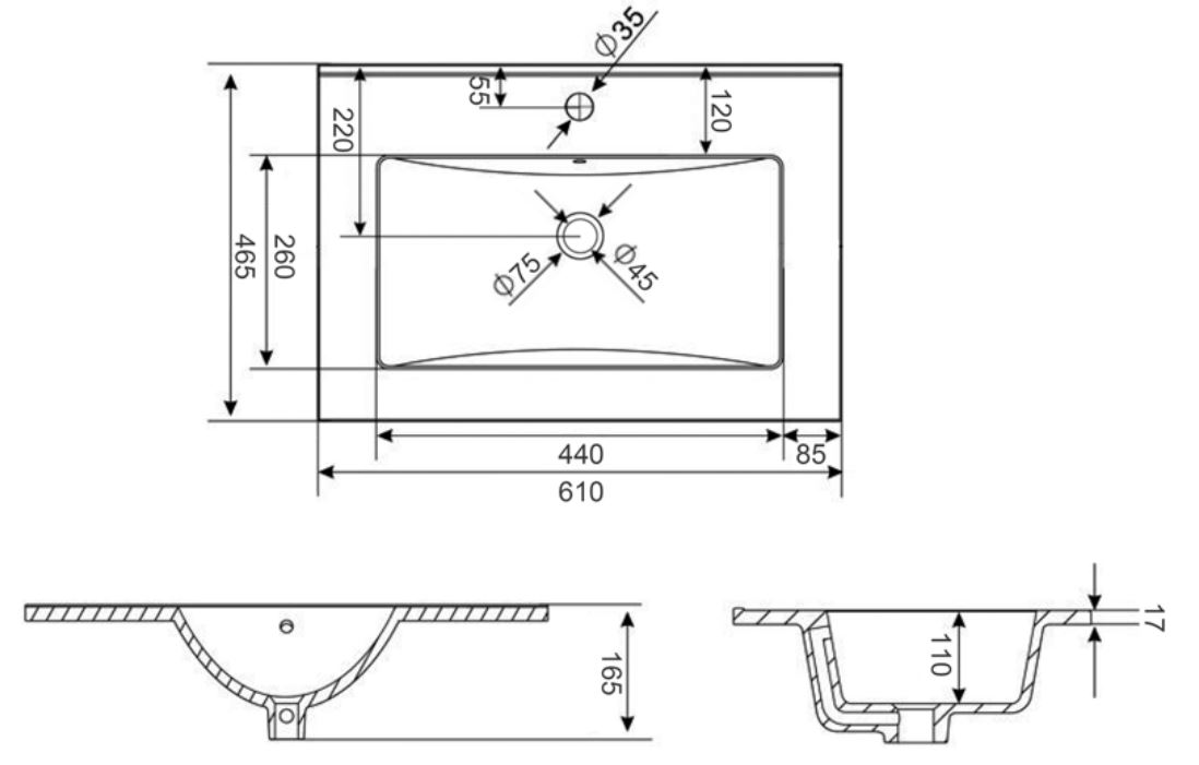 - 1 keramische wasbak in zwart