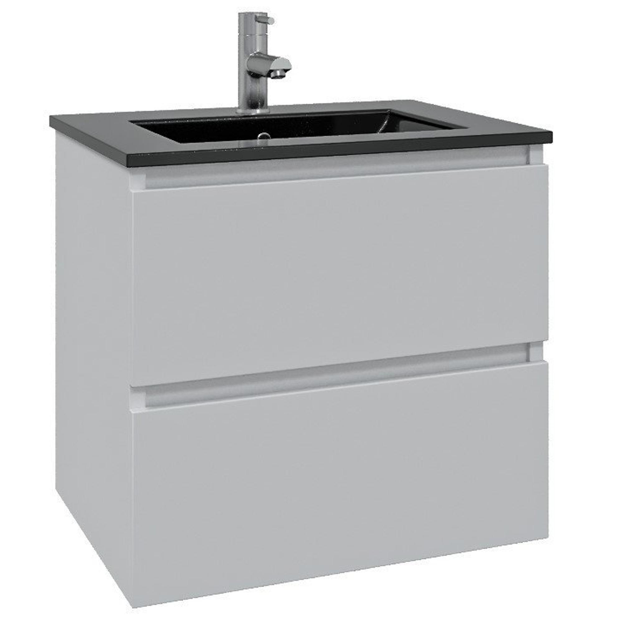 Adema Chaci Badkamermeubelset - 60x46x57cm - 1 keramische wasbak zwart - 1 kraangat - 2 lades - mat wit