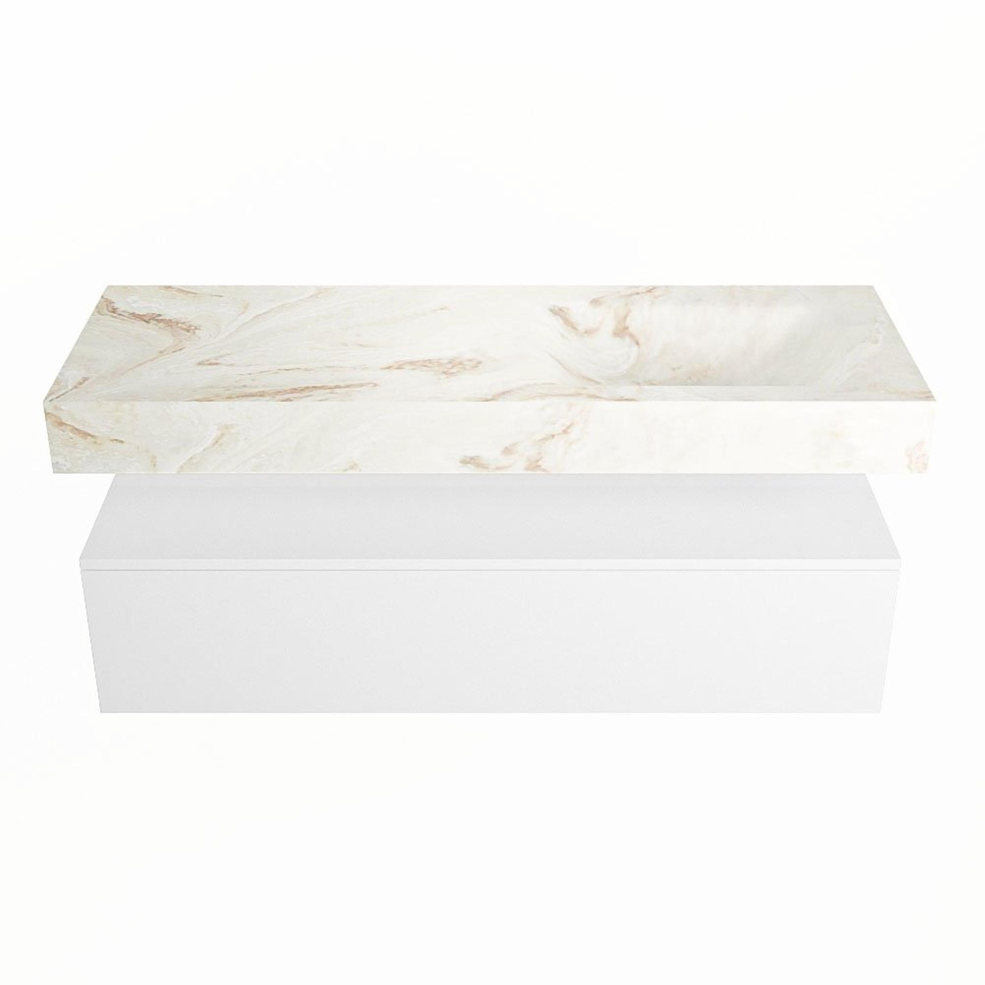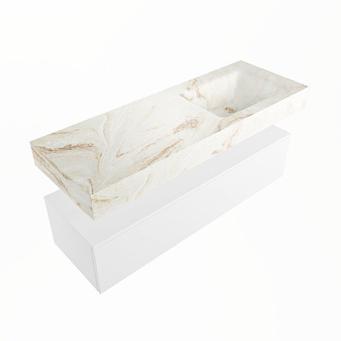 MONDIAZ ALAN - DLUX Badkamermeubelset - 130cm - onderkast - Talc - 1 lade - vrijhangende wastafel - wasbak rechts - 0 kraangaten - Frappe