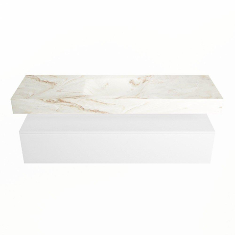 MONDIAZ ALAN - DLUX Badkamermeubelset - 150cm - onderkast - Talc - 1 lade - vrijhangende wastafel - wasbak midden - 1 kraangat - Frappe
