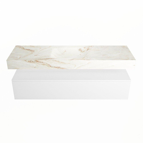 MONDIAZ ALAN - DLUX Badkamermeubelset - 150cm - onderkast - Talc - 1 lade - vrijhangende wastafel - wasbak midden - 0 kraangaten - Frappe
