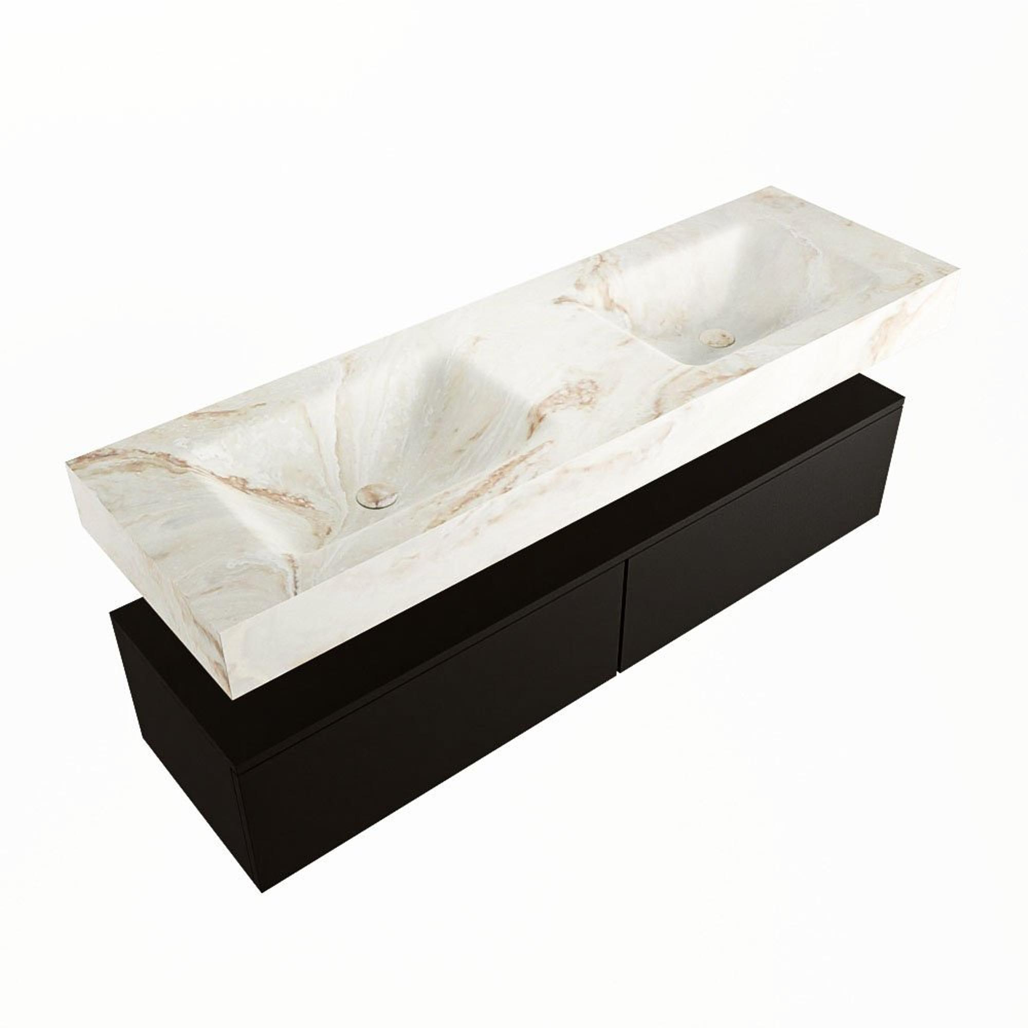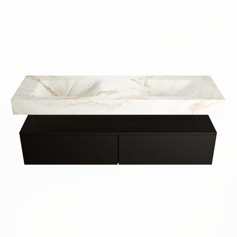 MONDIAZ ALAN - DLUX Badkamermeubelset - 150cm - onderkast - Urban - 2 lades - vrijhangende wastafel - 2 wasbakken - 2 kraangaten - Frappe