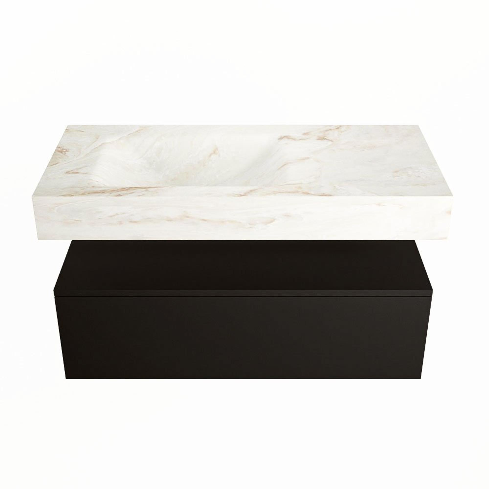 MONDIAZ ALAN - DLUX Badkamermeubelset - 100cm - onderkast - Urban - 1 lade - vrijhangende wastafel - wasbak links - 0 kraangaten - Frappe
