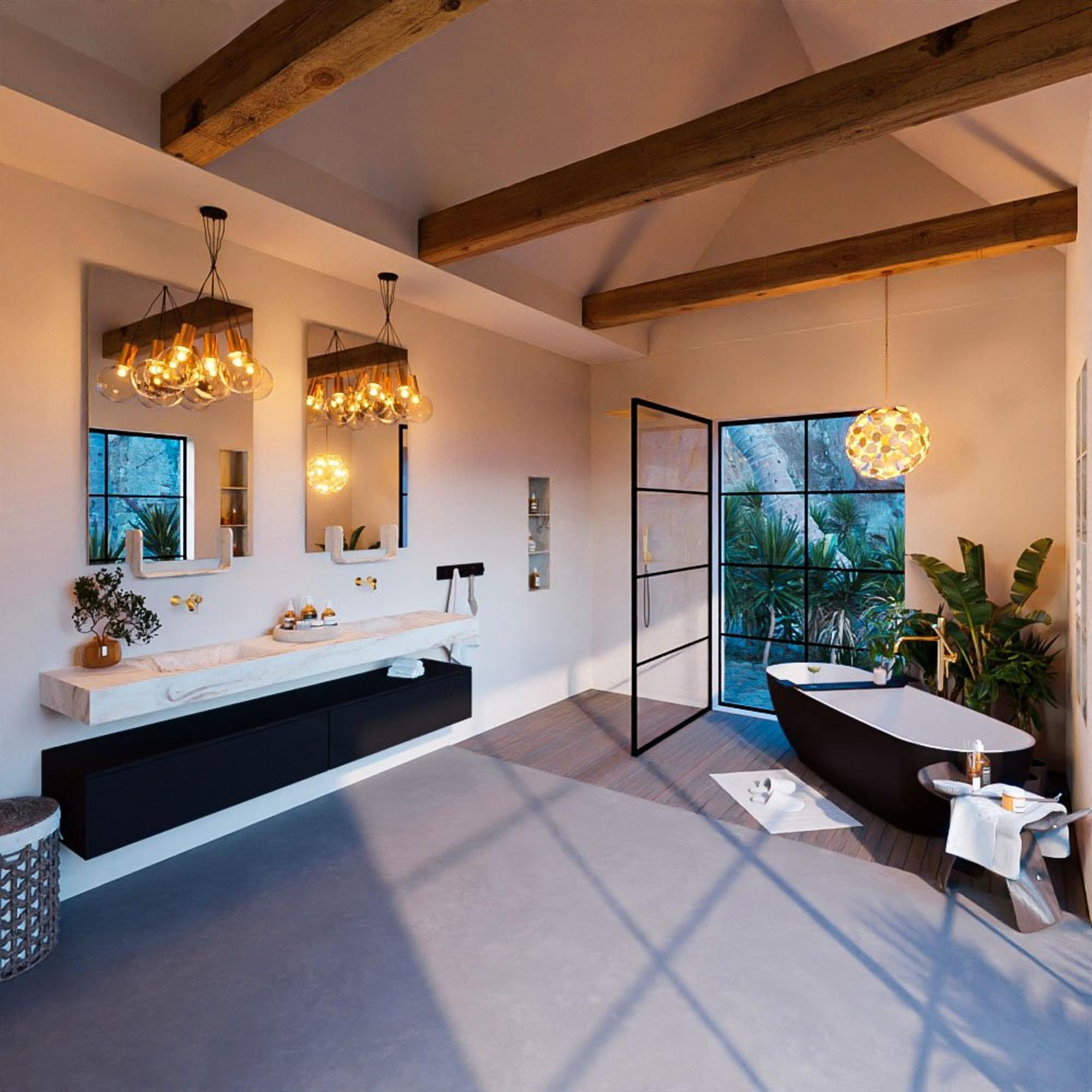 - Vrijhangende wastafel met 2 wasbakken