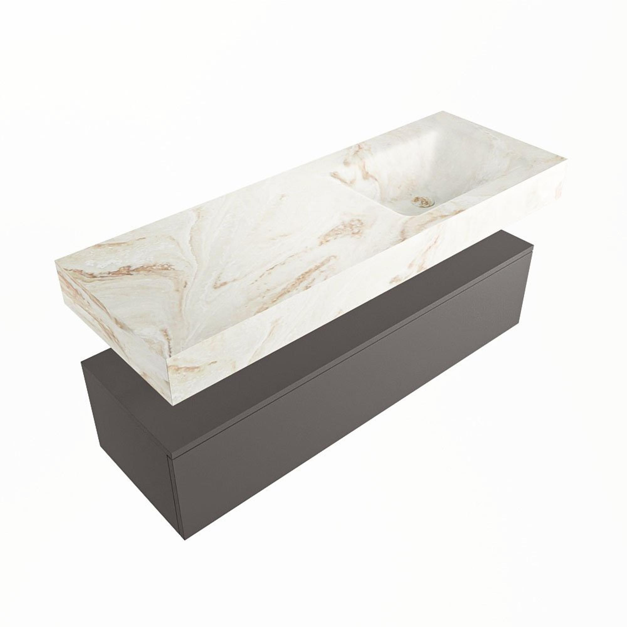 MONDIAZ ALAN - DLUX Badkamermeubelset - 130cm - onderkast - Dark grey - 1 lade - vrijhangende wastafel - wasbak rechts - 1 kraangat - Frappe