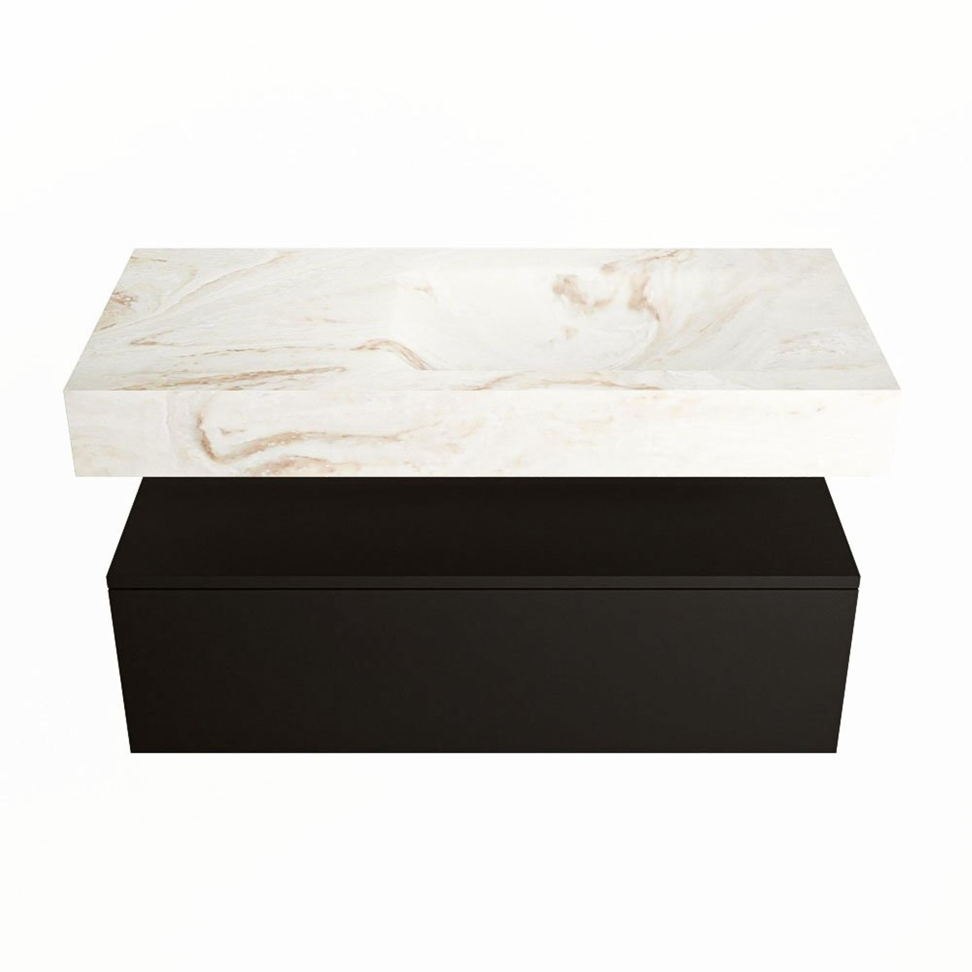 MONDIAZ ALAN - DLUX Badkamermeubelset - 100cm - onderkast - Urban - 1 lade - vrijhangende wastafel - wasbak rechts - 0 kraangaten - Frappe