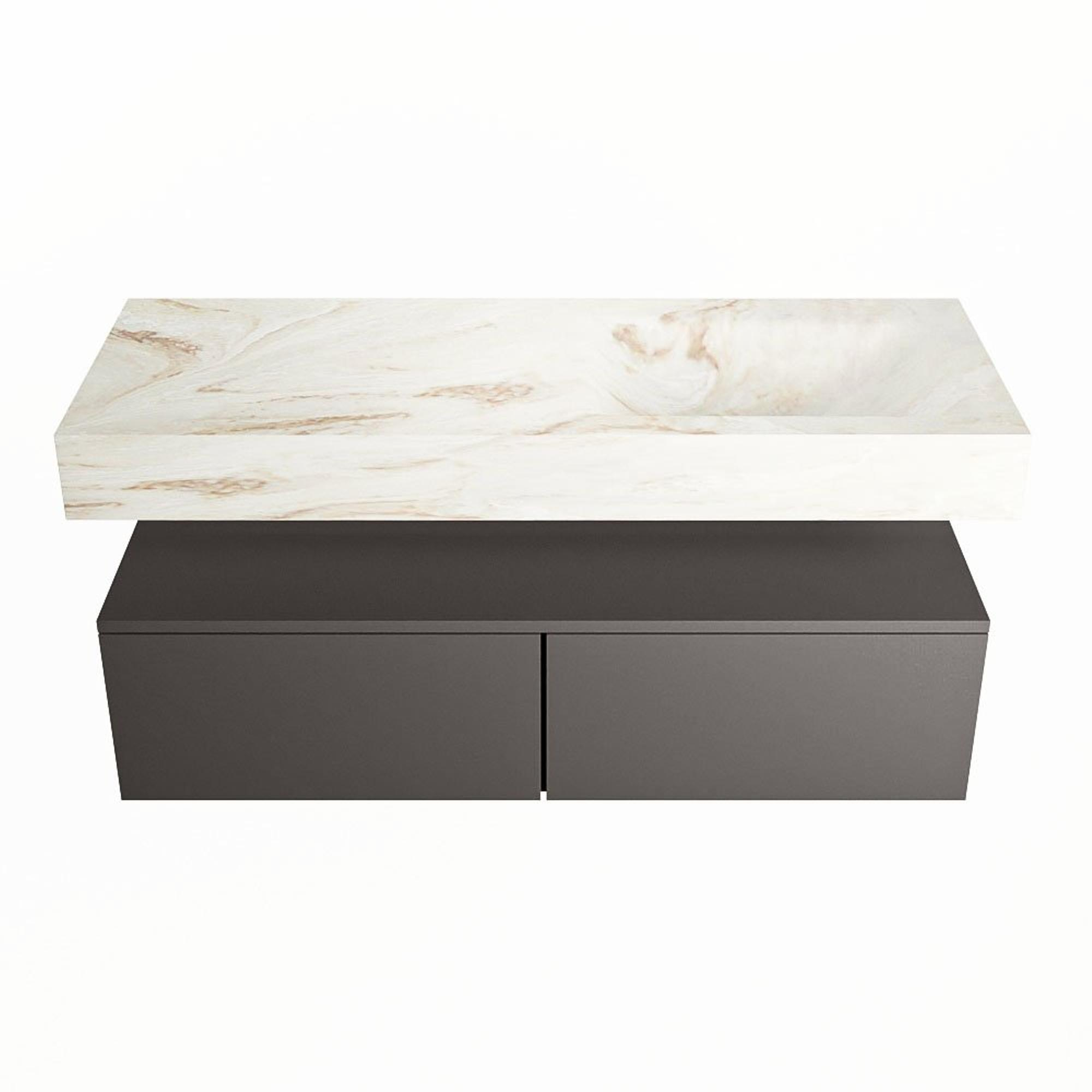 MONDIAZ ALAN - DLUX Badkamermeubelset - 120cm - onderkast - Dark grey - 2 lades - vrijhangende wastafel - wasbak rechts - 0 kraangaten - Frappe