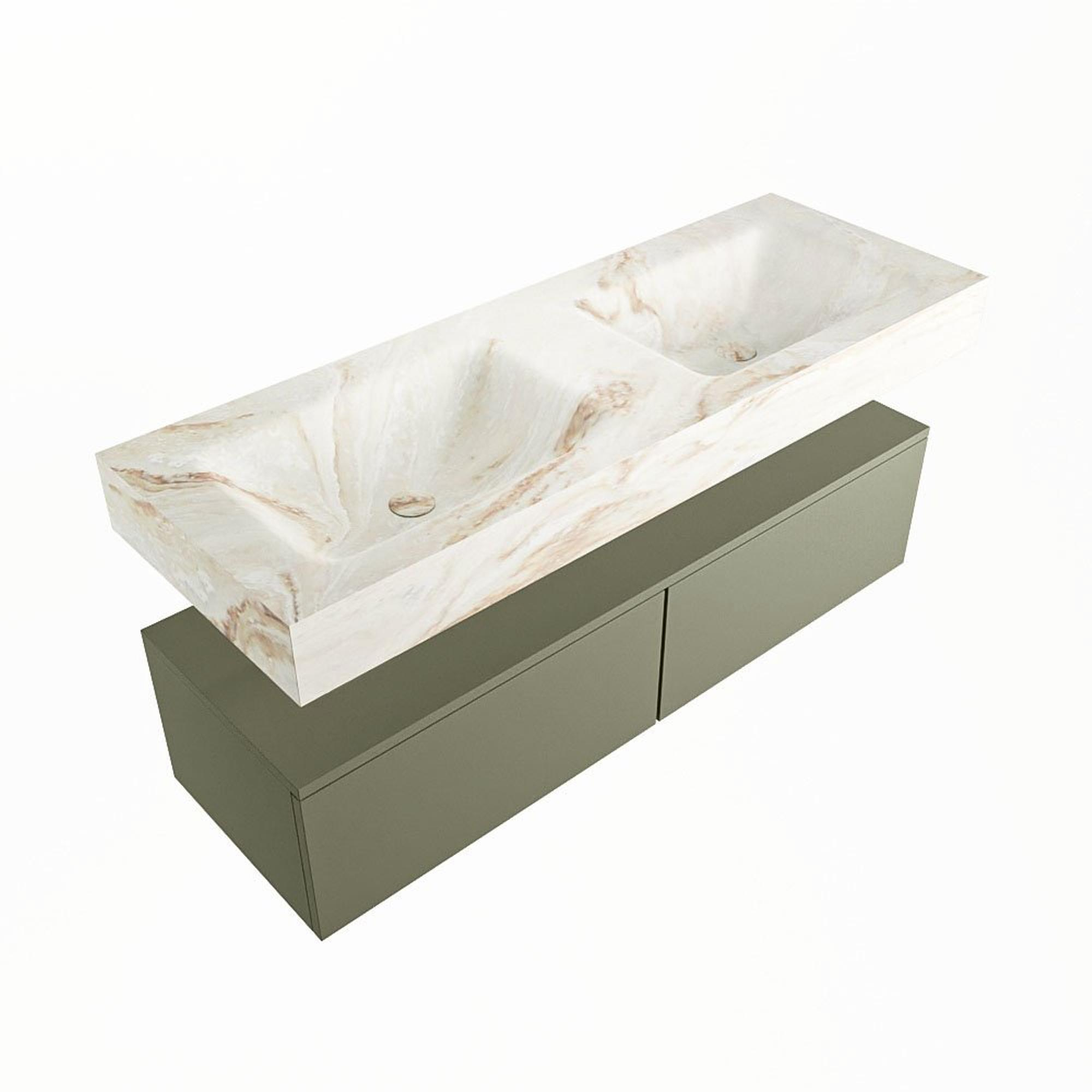 MONDIAZ ALAN - DLUX Badkamermeubelset - 130cm - onderkast - Army - 2 lades - vrijhangende wastafel - 2 wasbakken - 2 kraangaten - Frappe