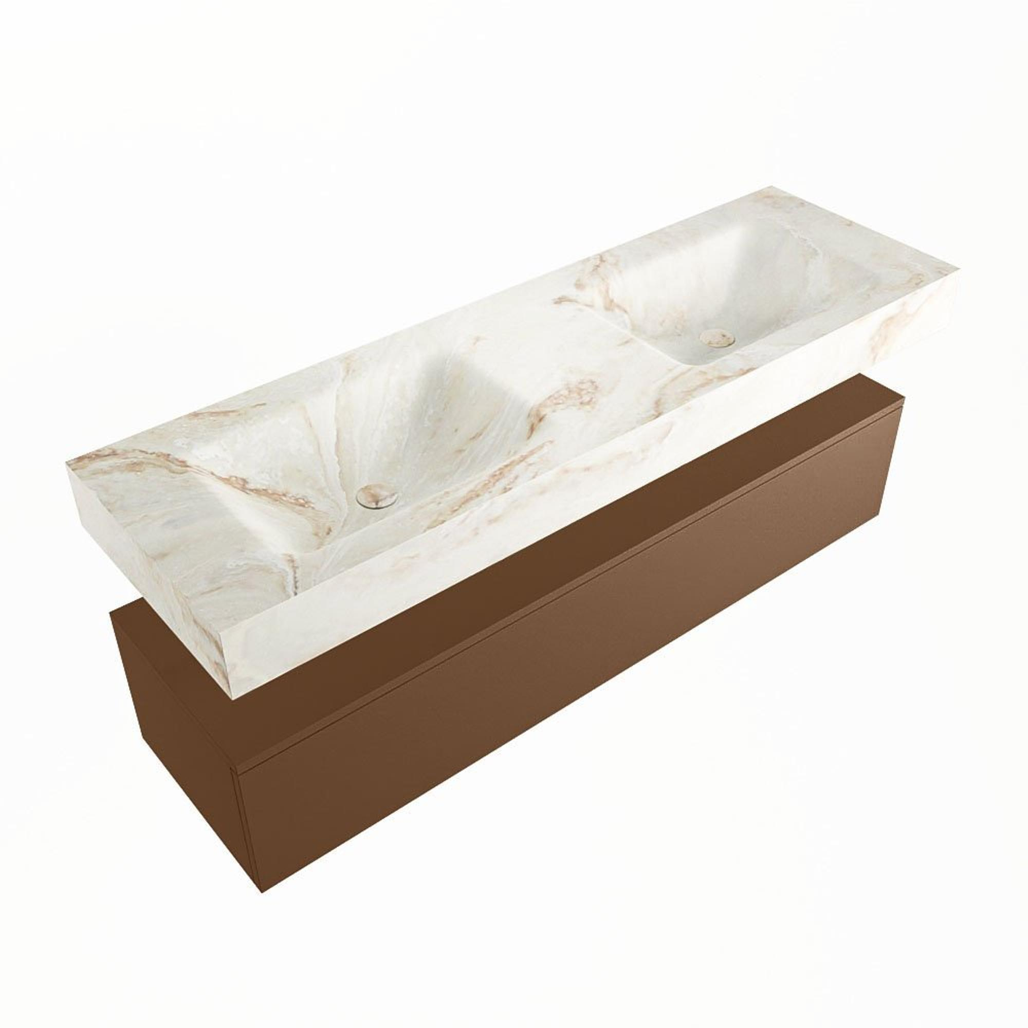 MONDIAZ ALAN - DLUX Badkamermeubelset - 150cm - onderkast - Rust - 1 lade - vrijhangende wastafel - 2 wasbakken - 2 kraangaten - Frappe