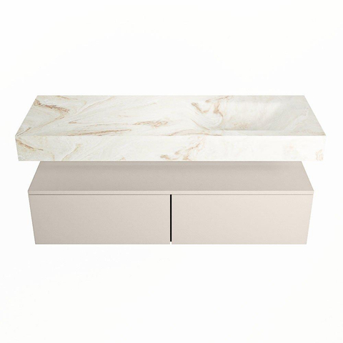 MONDIAZ ALAN - DLUX Badkamermeubelset - 130cm - onderkast - Linen - 2 lades - vrijhangende wastafel - wasbak rechts - 1 kraangat - Frappe