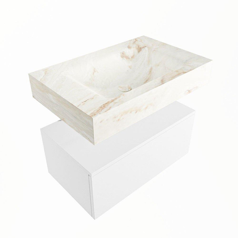 MONDIAZ ALAN - DLUX Badkamermeubelset - 70cm - onderkast - Talc - 1 lade - vrijhangende wastafel - wasbak midden - 0 kraangaten - Frappe