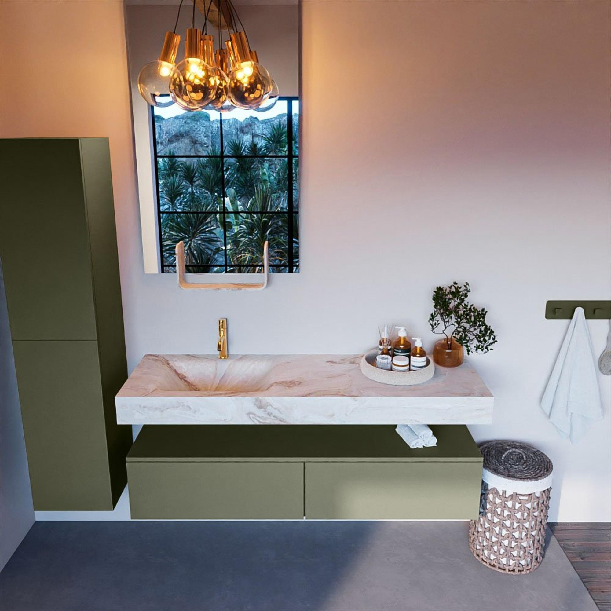 MONDIAZ ALAN - DLUX Badkamermeubelset - 150cm - onderkast - Army - 2 lades - vrijhangende wastafel - wasbak links - 1 kraangat - Frappe