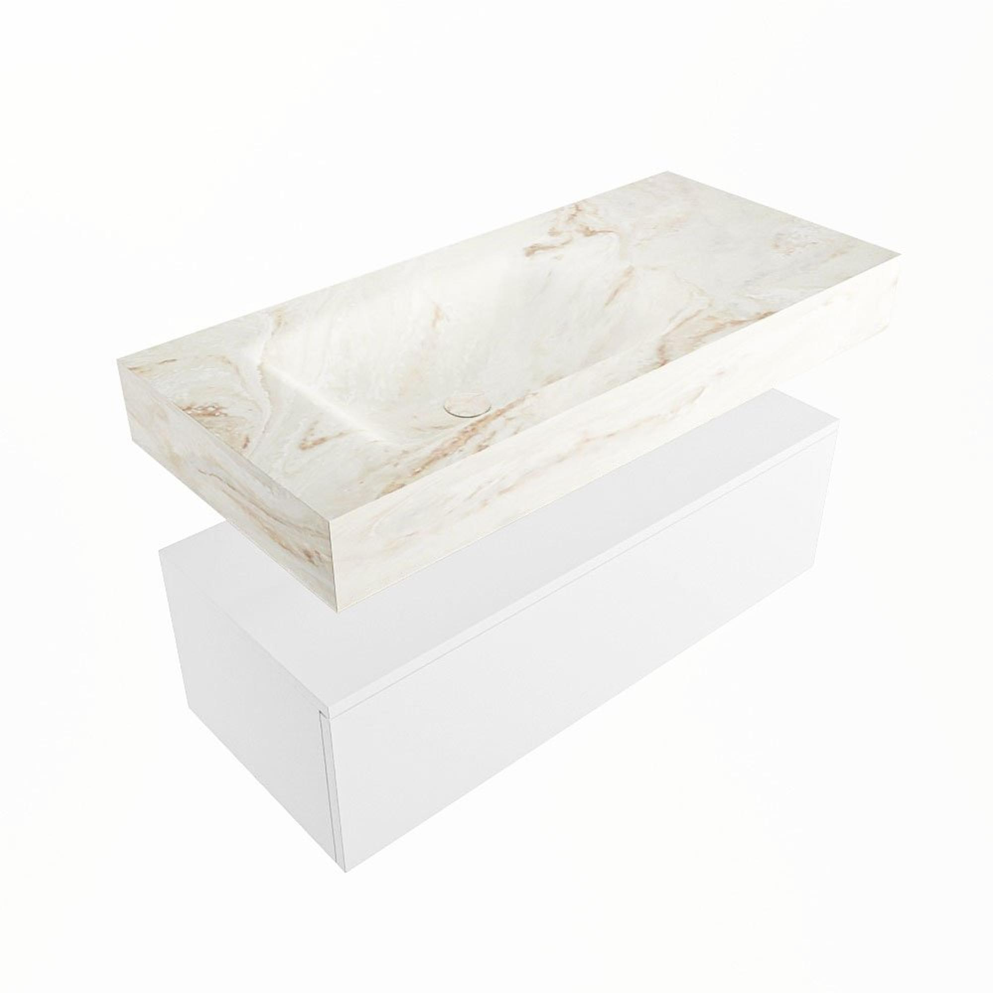 MONDIAZ ALAN - DLUX Badkamermeubelset - 100cm - onderkast - Talc - 1 lade - vrijhangende wastafel - wasbak links - 0 kraangaten - Frappe