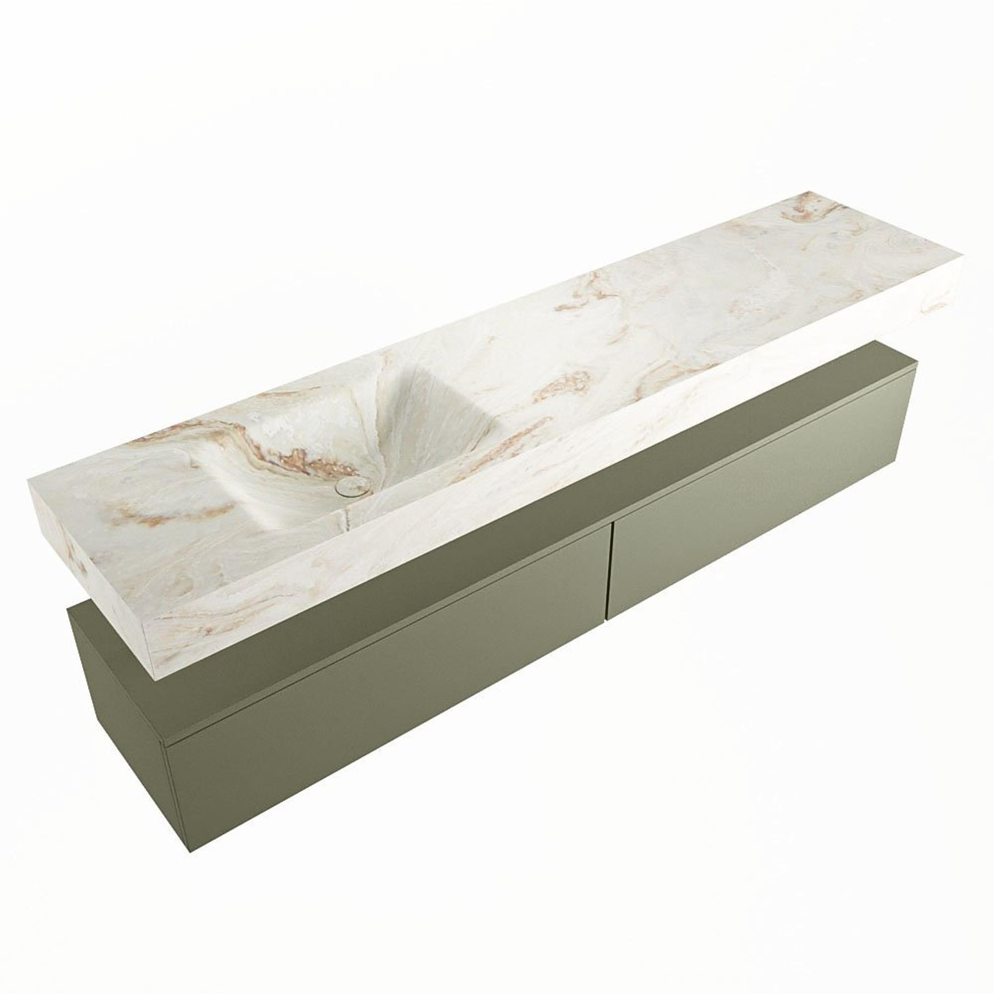MONDIAZ ALAN - DLUX Badkamermeubelset - 200cm - onderkast - Army - 2 lades - vrijhangende wastafel - wasbak links - 0 kraangaten - Frappe