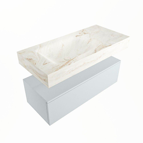 MONDIAZ ALAN - DLUX Badkamermeubelset - 100cm - onderkast - Clay - 1 lade - vrijhangende wastafel - wasbak links - 1 kraangat - Frappe