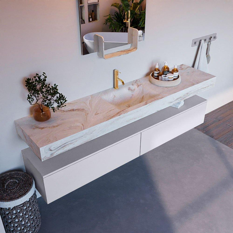 MONDIAZ ALAN - DLUX Badkamermeubelset - 200cm - onderkast - Cale - 2 lades - vrijhangende wastafel - wasbak midden - 1 kraangat - Frappe